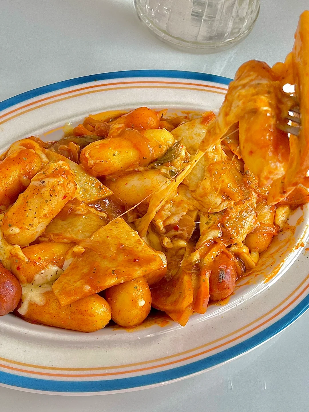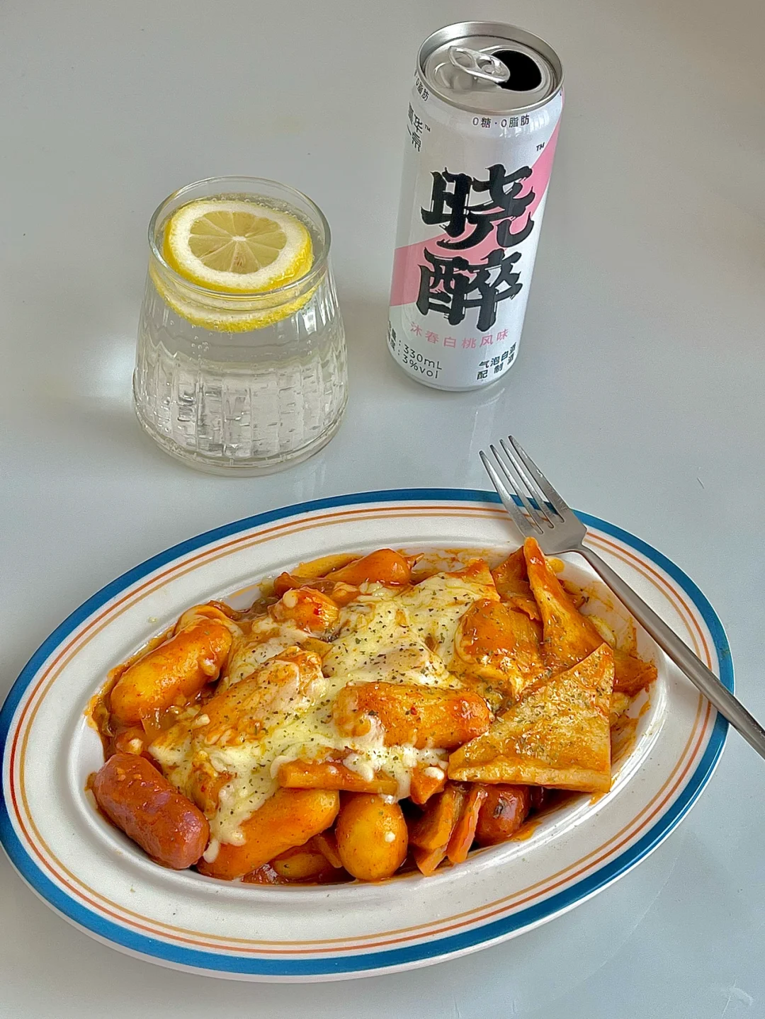 糯唧唧的芝士年糕搭配酱汁浓郁的鱼饼真的好好吃😋,吃过一次你就会爱上,再搭配一杯0糖0脂的气泡白酒来解腻解辣,真是太幸福了!