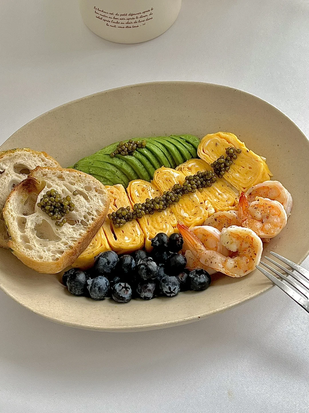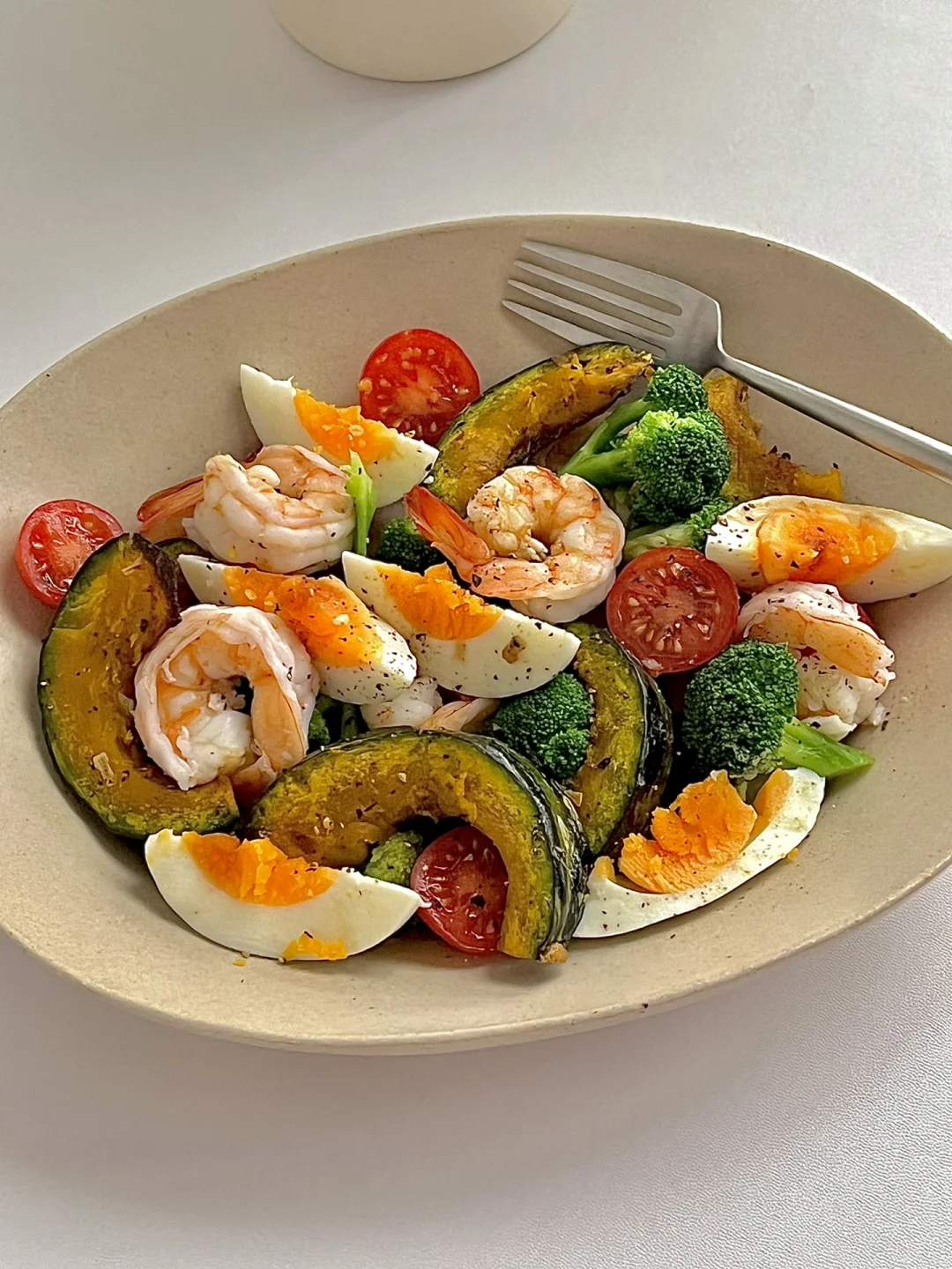 1️⃣厚蛋烧虾仁鱼子酱沙拉