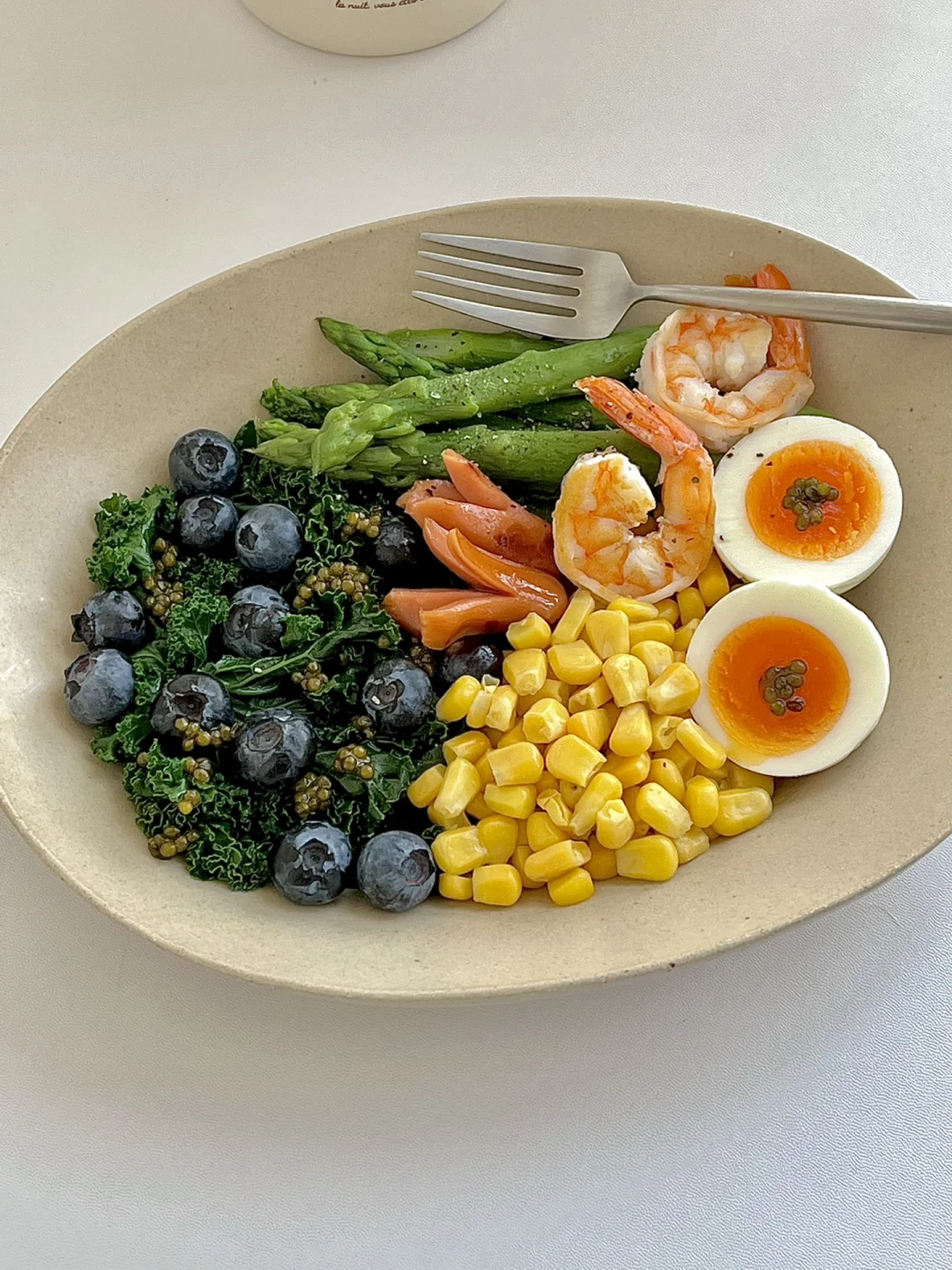 5️⃣芦笋虾仁鸡蛋玉米沙拉