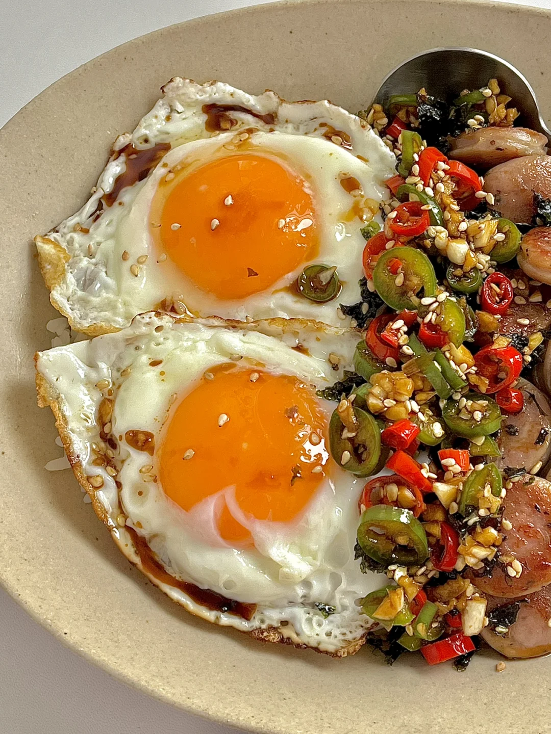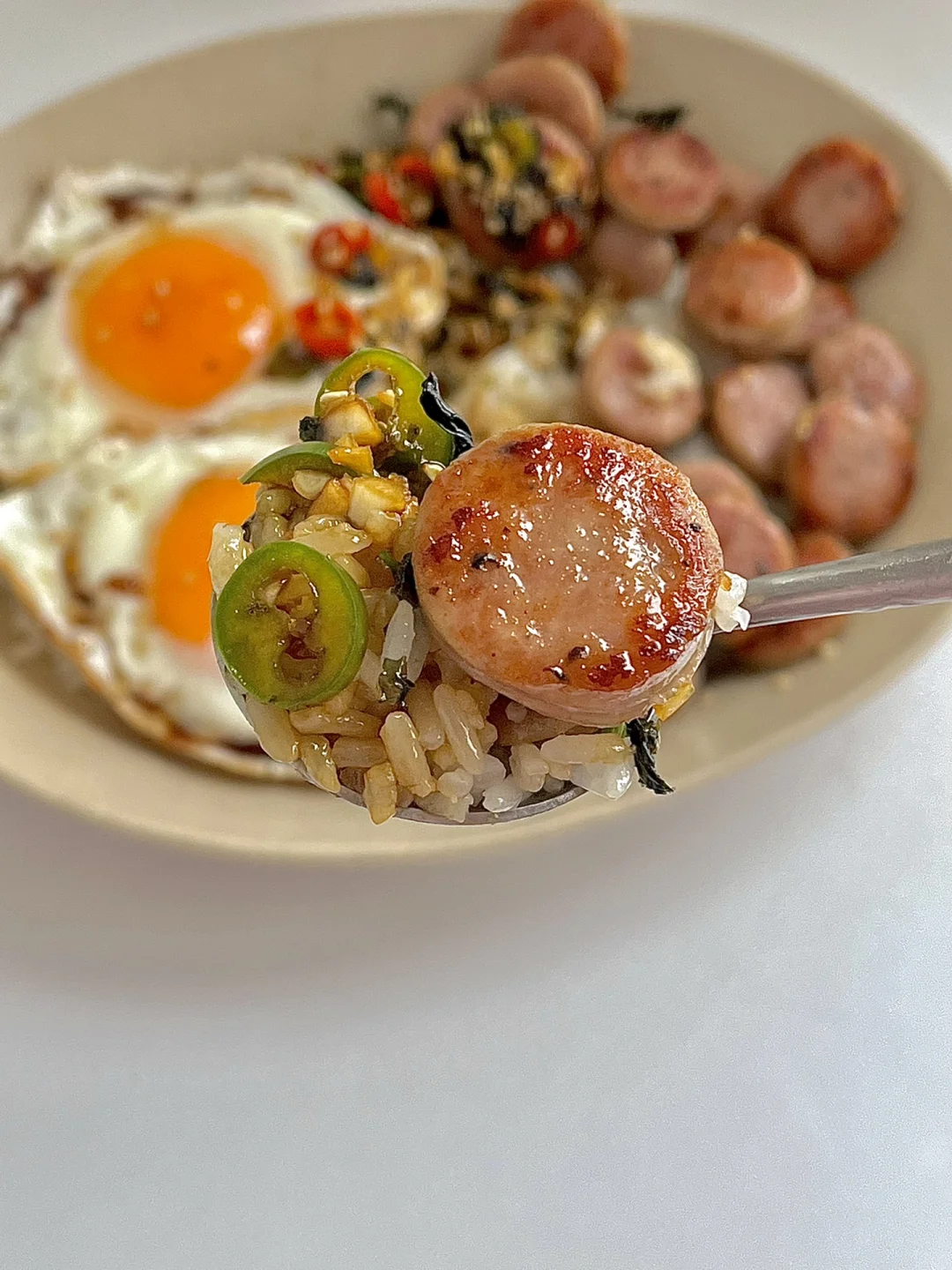☀️周末的早午餐|巨好吃的香肠煎蛋老式拌饭