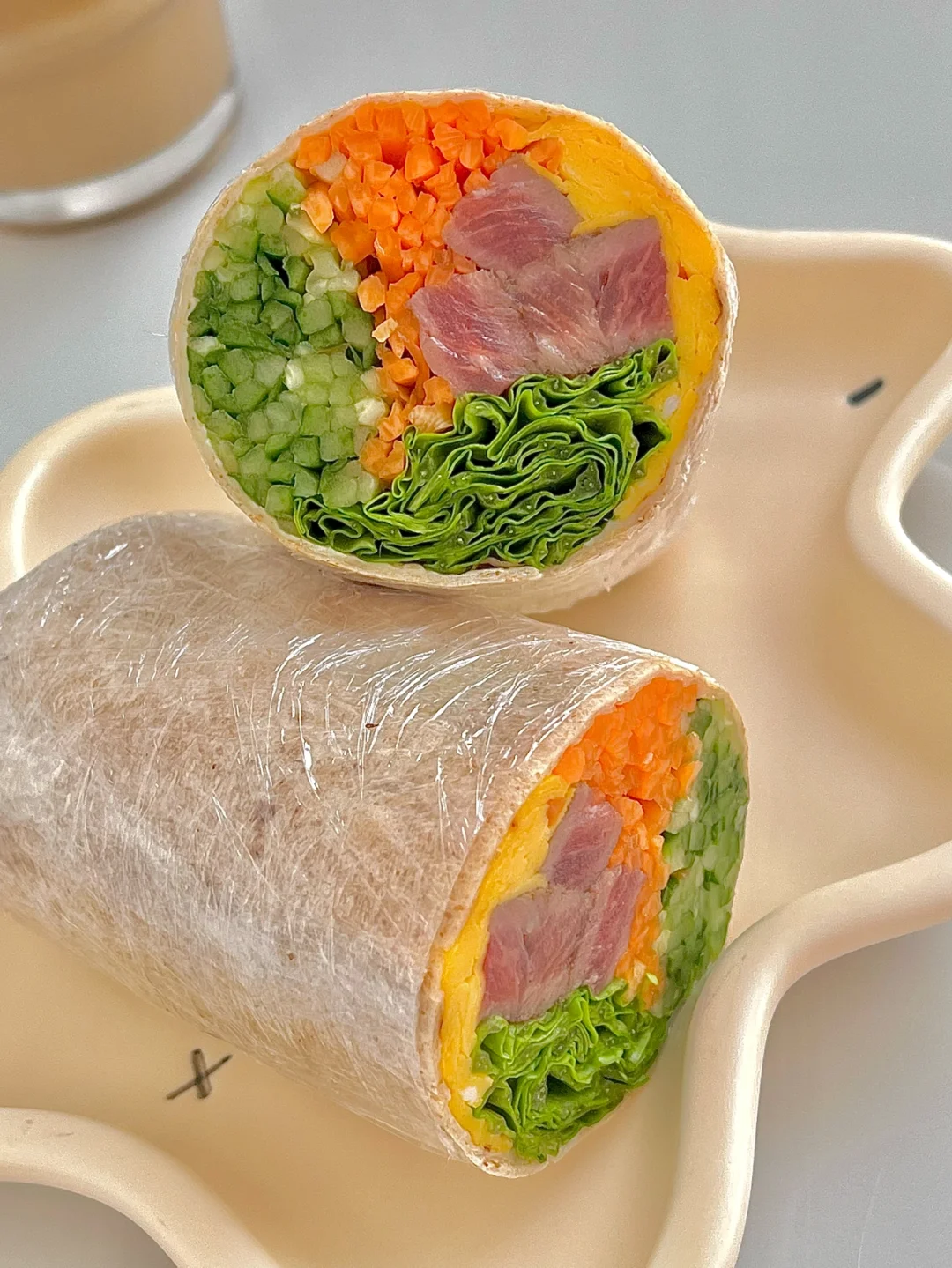 胡萝卜是生的哈,我这个东北人能吃生的,如果吃不来生的就可以水煮一下。卷饼太好吃了😋低脂高蛋白赶紧做起来!