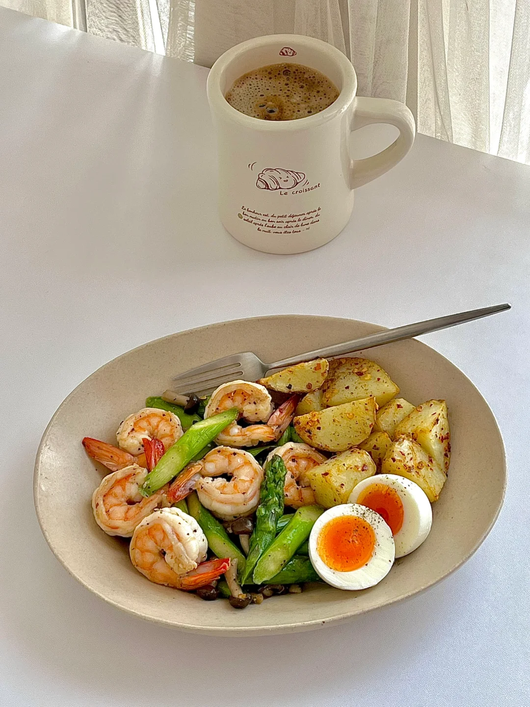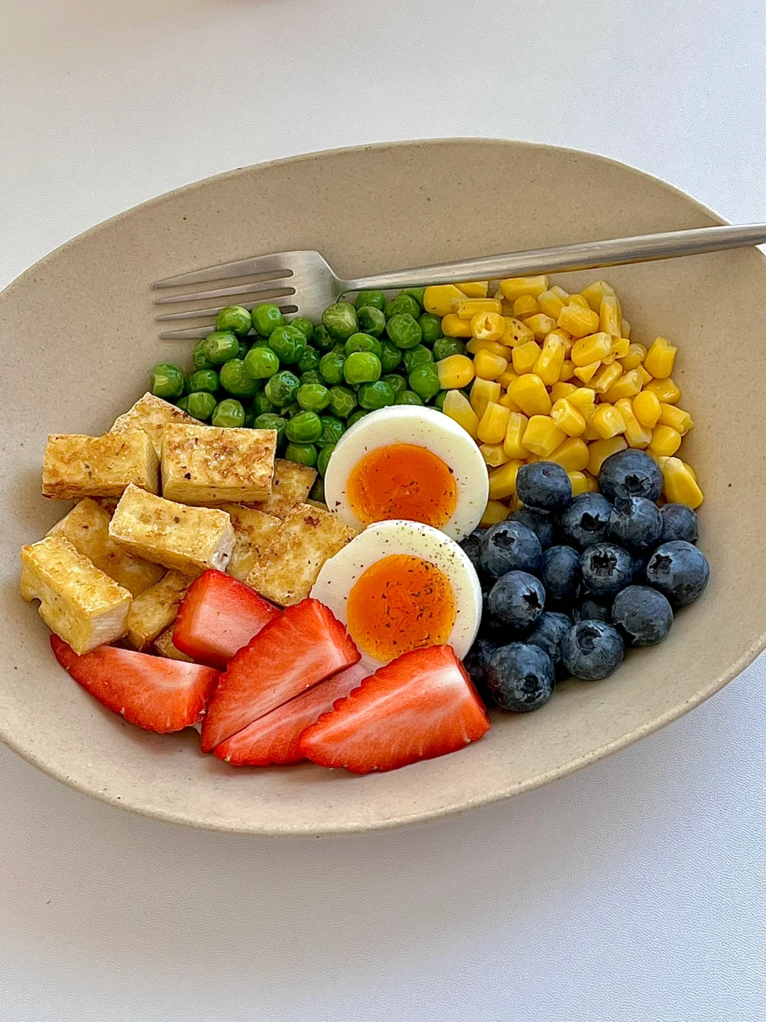 上班族的早餐 工作日早餐想吃的健康又简单,那就来个高蛋白沙拉吧🥗夏天到了,赶紧冲呀~ . 我的食材选择其实挺单一的: 蛋白质:鸡蛋 虾仁 水浸金枪鱼罐头 牛肉 碳水:土豆 玉米 鹰嘴豆 杂粮饭 脂肪:橄榄油 牛油果 三文鱼 膳食纤维维生素:各种蔬菜,低卡水果都可以搭配 做法就是少油少盐,蒸煮的做法! . 大家可以抄作业了~