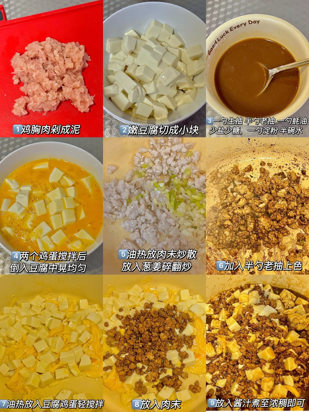 ✨食材:嫩豆腐一块 一小块鸡胸肉 两个鸡蛋