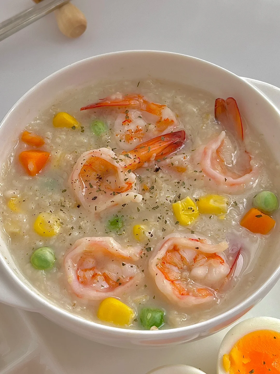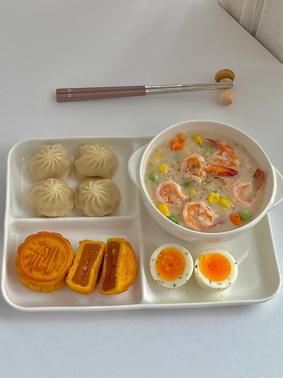 ☀️中秋节早餐|虾仁杂蔬燕麦粥|月饼|灌汤包