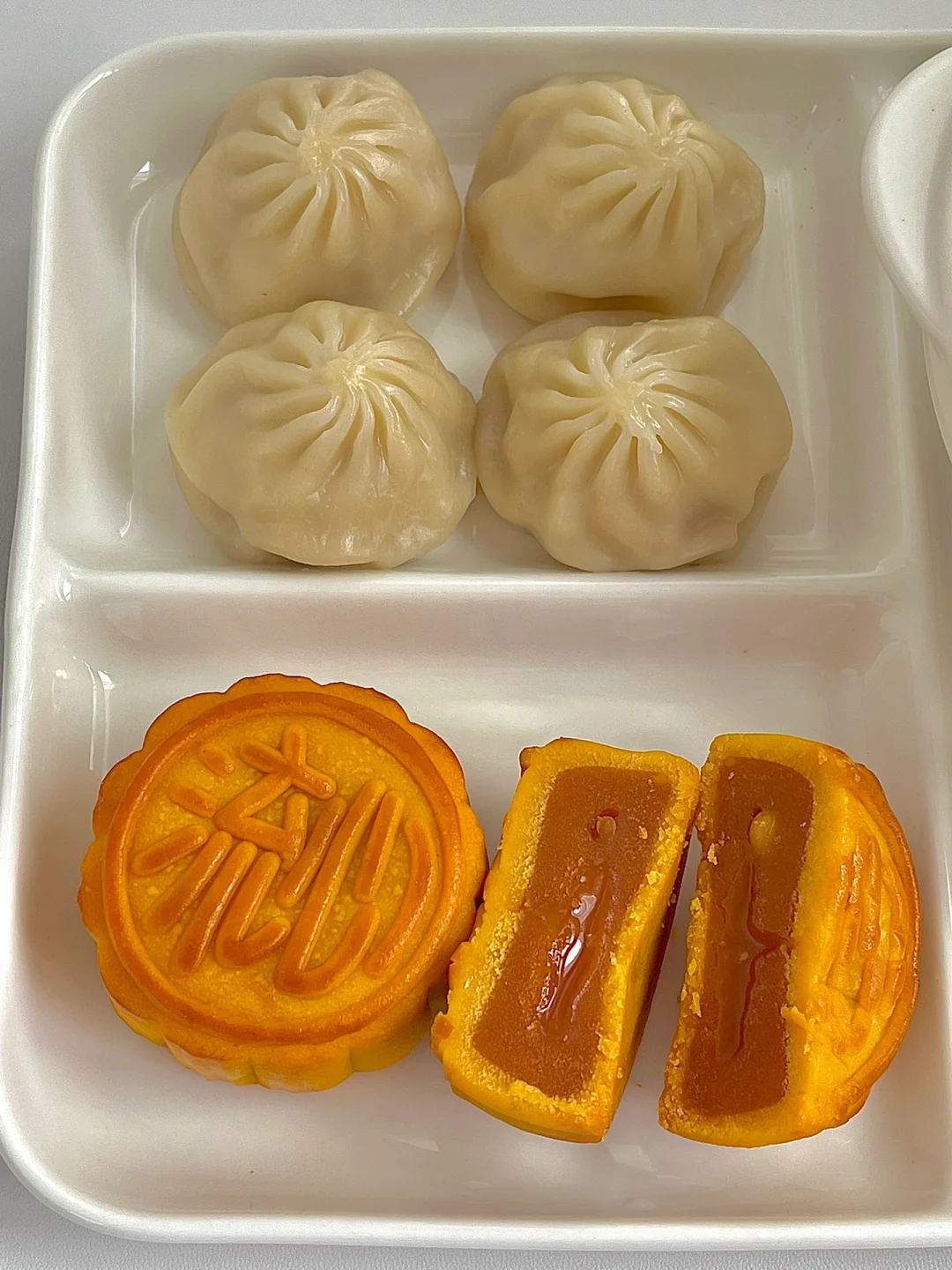 今日份中式早餐分享: 虾仁杂蔬燕麦粥 水煮蛋 灌汤包 流心奶黄月饼🥮 . 祝大家中秋节快乐呀! 今天也要应景吃个吃个月饼呀,虽然没吃完😂 特别喜欢这个咸口的燕麦粥,好好吃😋