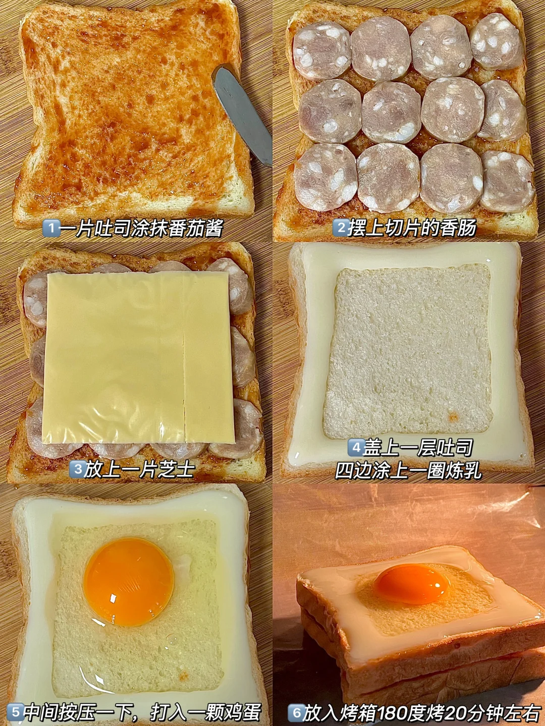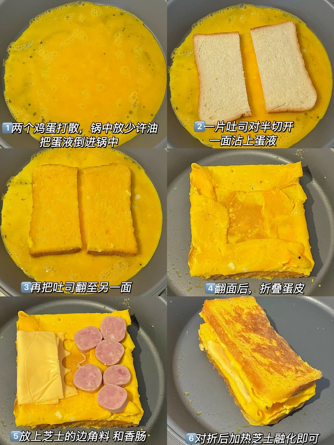 热气腾腾的三餐 1️⃣太阳蛋芝士吐司三明治 2️⃣芝士鸡蛋香肠煎吐司 3️⃣水果法式吐司 4️⃣花生酱香蕉西多士 5️⃣芝士香肠吐司卷 6️⃣芝士香肠蛋抱吐司 . 吐司的神仙吃法,每天让你不重样😋 吐司真的很百搭,跟任何食物搭配都不会出错 赶紧抄作业吧,跟着我让普通的吐司也能做成美味又高颜值的快手早餐吧!