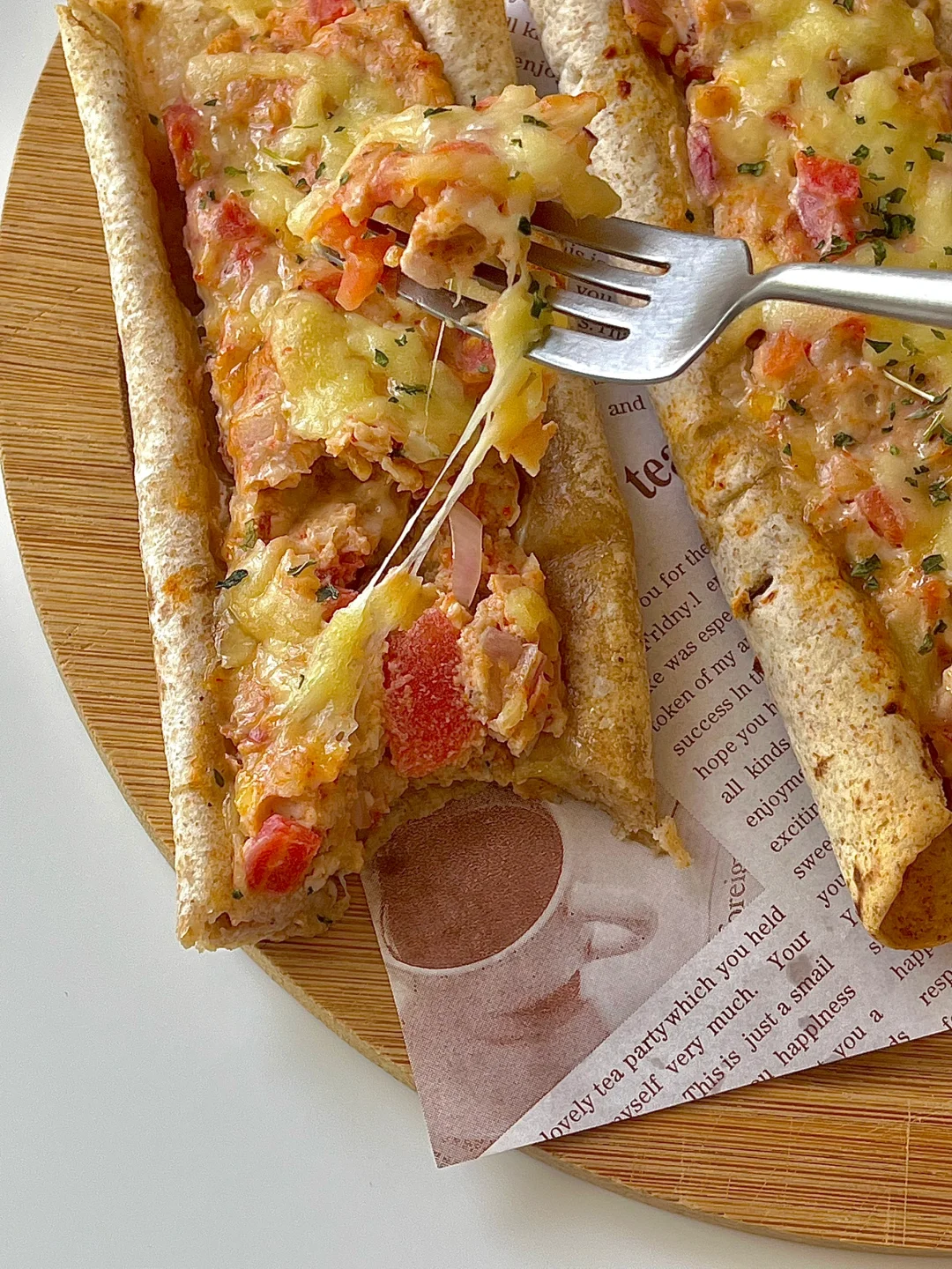 ☀️工作日早餐|低卡版~鸡胸肉番茄芝士卷饼