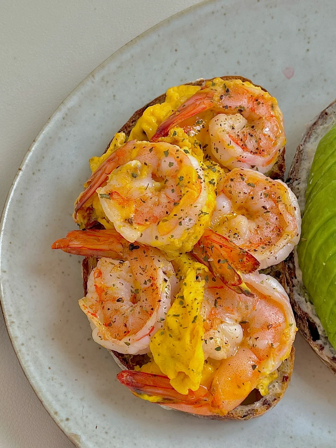 ☀️少一片面包的开放式三明治|滑蛋虾仁好吃