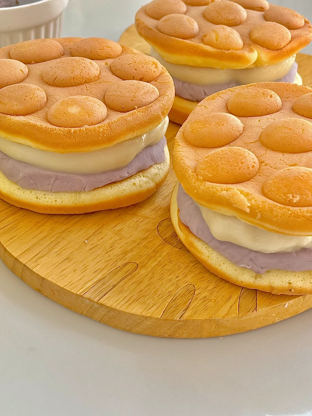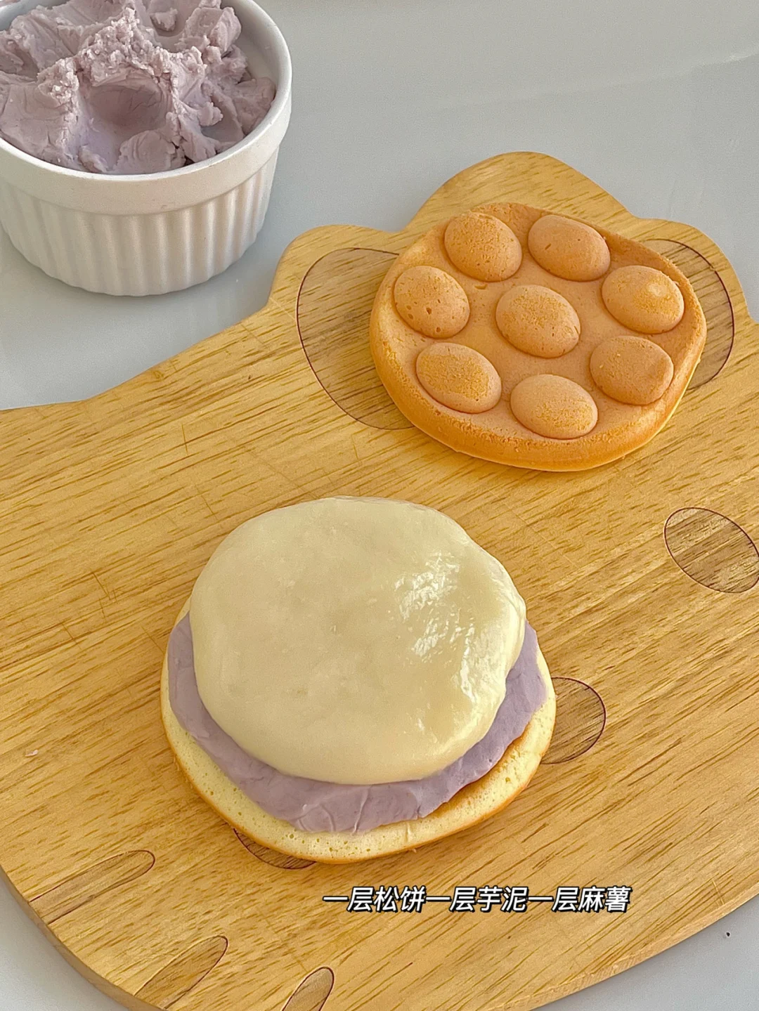 室友上次拿回来好多鸡蛋仔松饼🧇,觉得单独吃太单调了,我就做了里面的夹心芋泥和麻薯,真的太好吃了😋。炒鸡拉丝的麻薯方法教给你们!