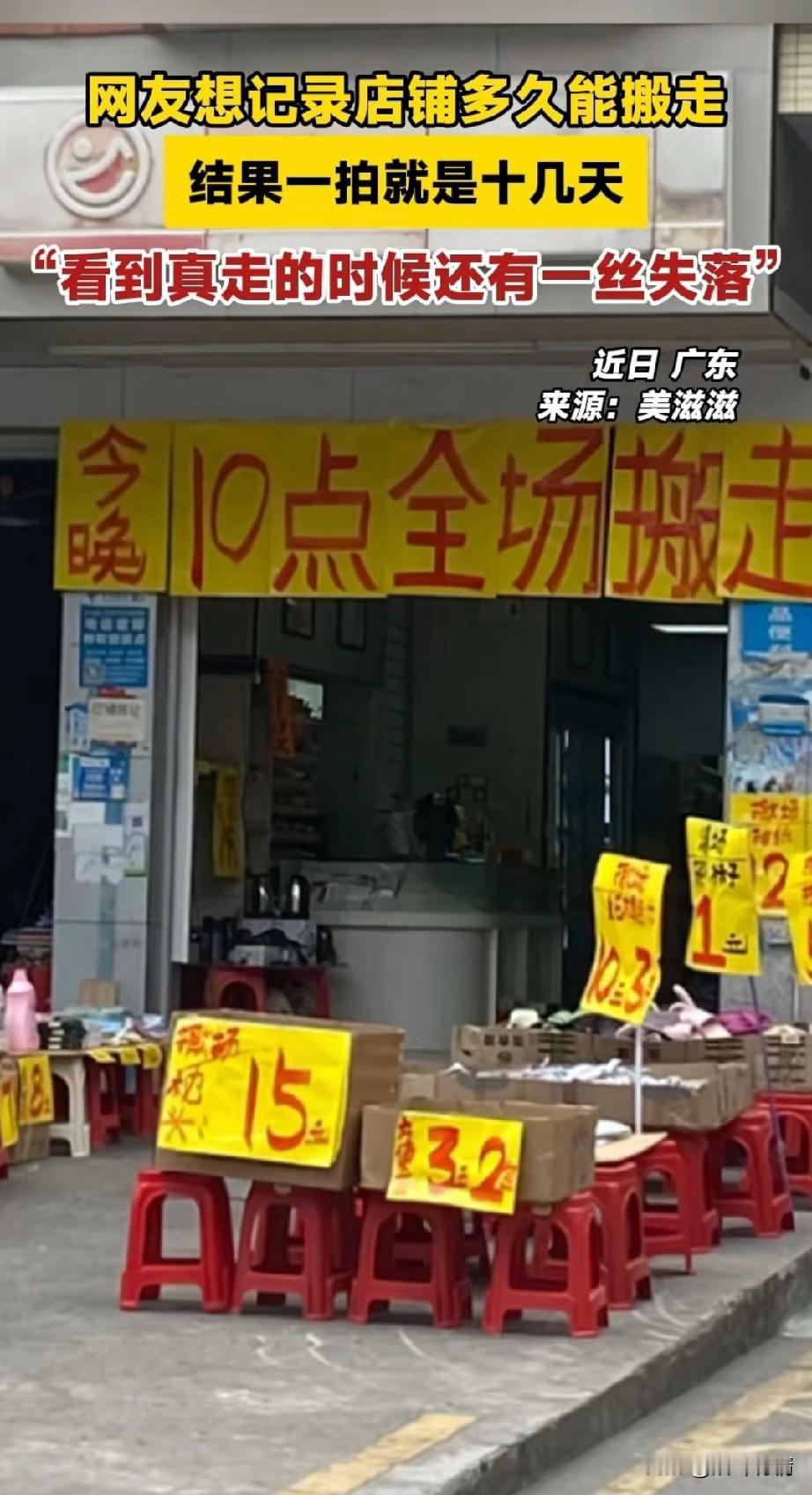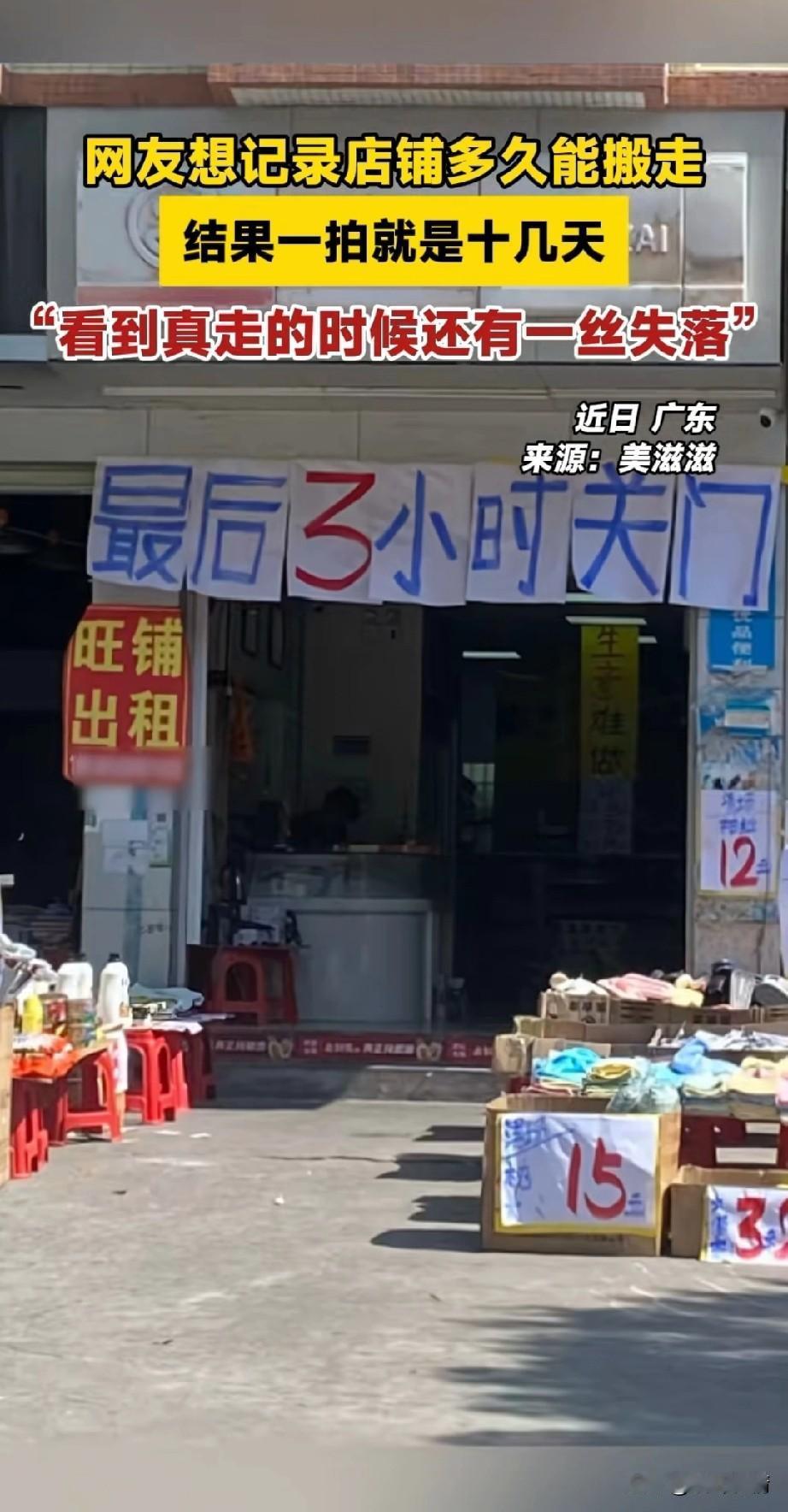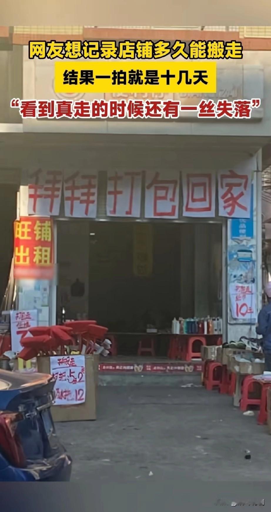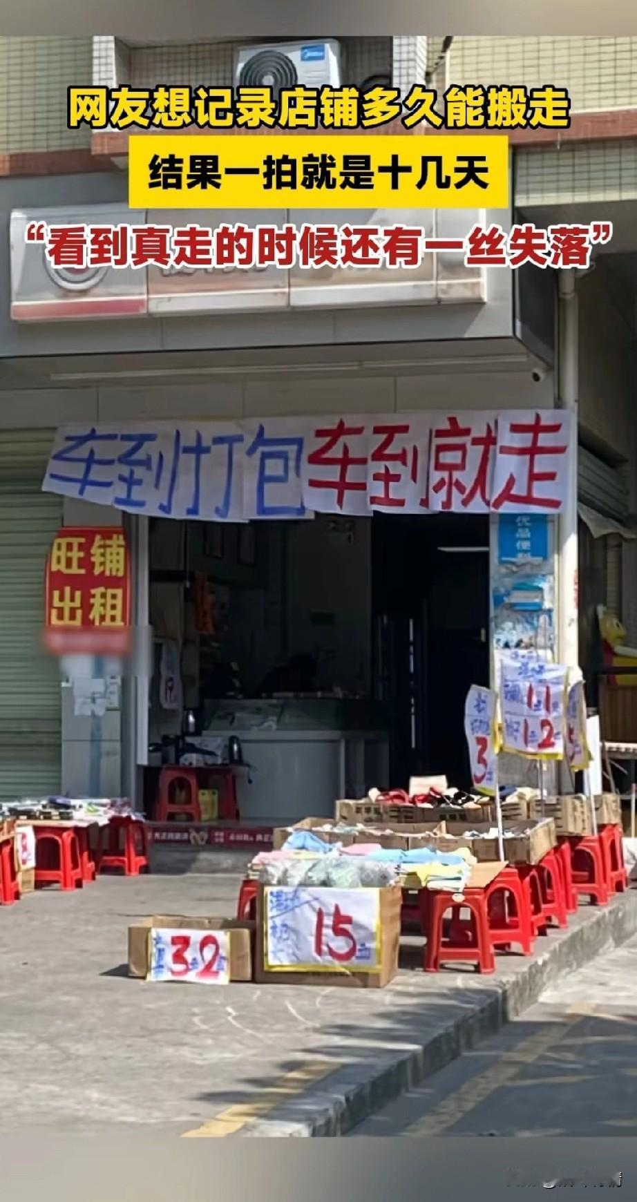 网友看见了一家要搬走的杂货店, 想记录一下他什么时候能够搬走, 看到他的横幅写着今晚交铺退场搬走, 结果第二天去看的时候, 横幅换成了今晚10点全场搬走, 第三天去看的时候, 横幅变成了最后3小时关门, 第四天横幅又变成了, 车到打包,车到就走! 第五天横幅又换成了今天不走是小狗, 第六天横幅是拜拜打包回家, 第七天横幅是关门大吉,关门走, 第八天横幅是车票已定,车到就走, 第九天横幅是等一下打包就走, 第十天横幅是告别南沙,再见! 第十一天朋友再去看的时候已经真走了,今年生意不是很好干, 很多小店铺都关门了, 这老板估计也是商品卖不出去, 于是就关门回老家了, 可以看得出来后续都是在清理库存, 大家对于这样清理库存的套路怎么看? 甩货撤店 商铺撤柜 店面喜迁 店铺打包拆除 店铺结业拆除 店铺整体搬迁