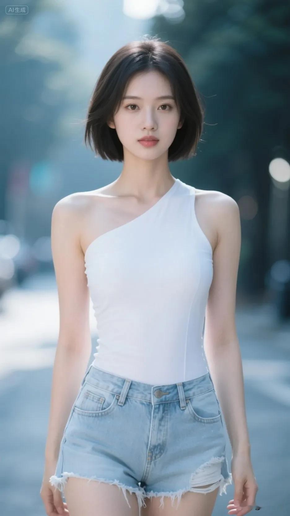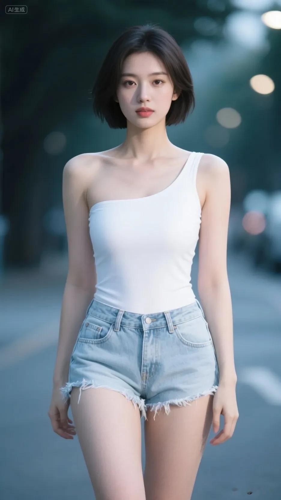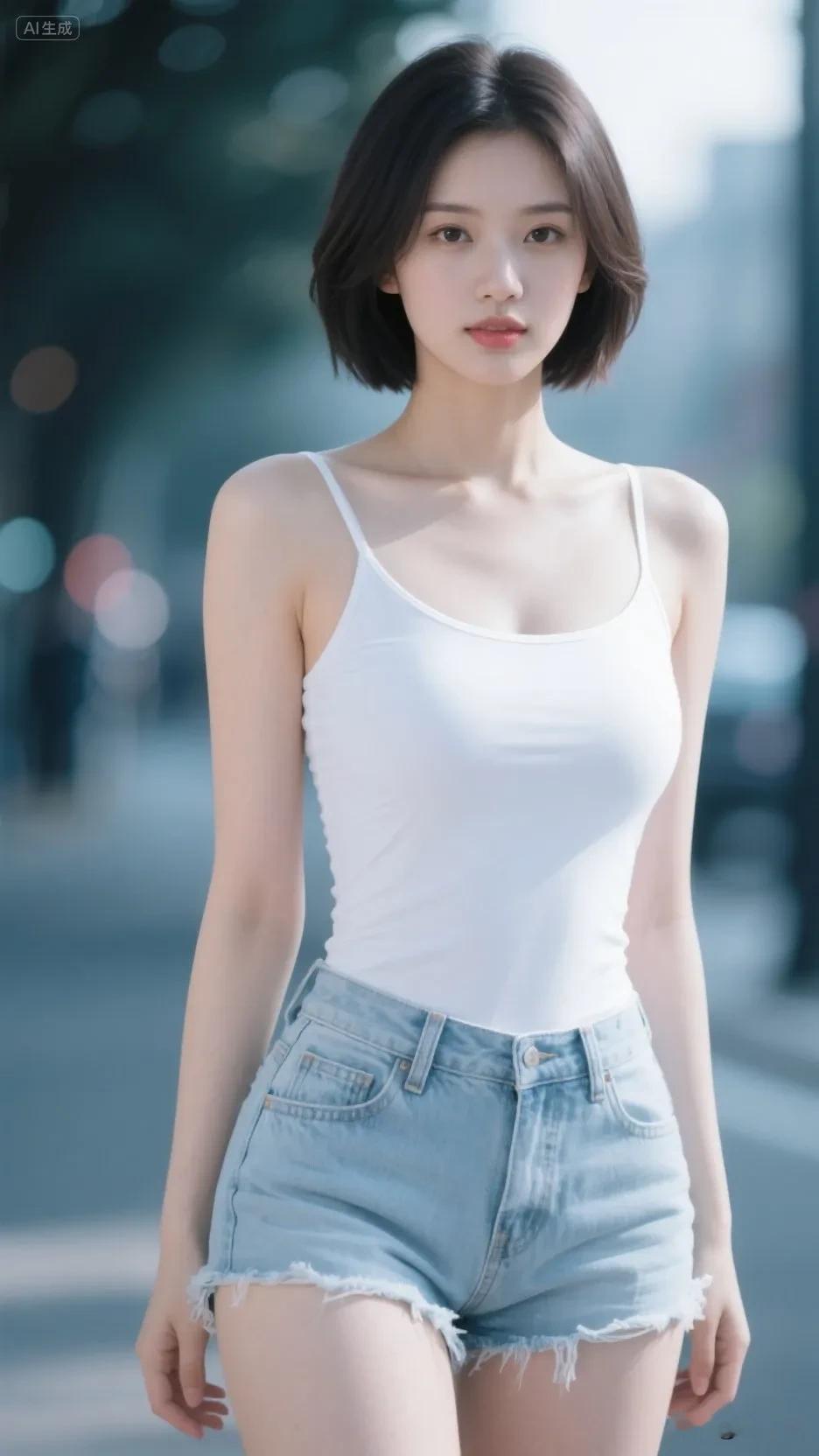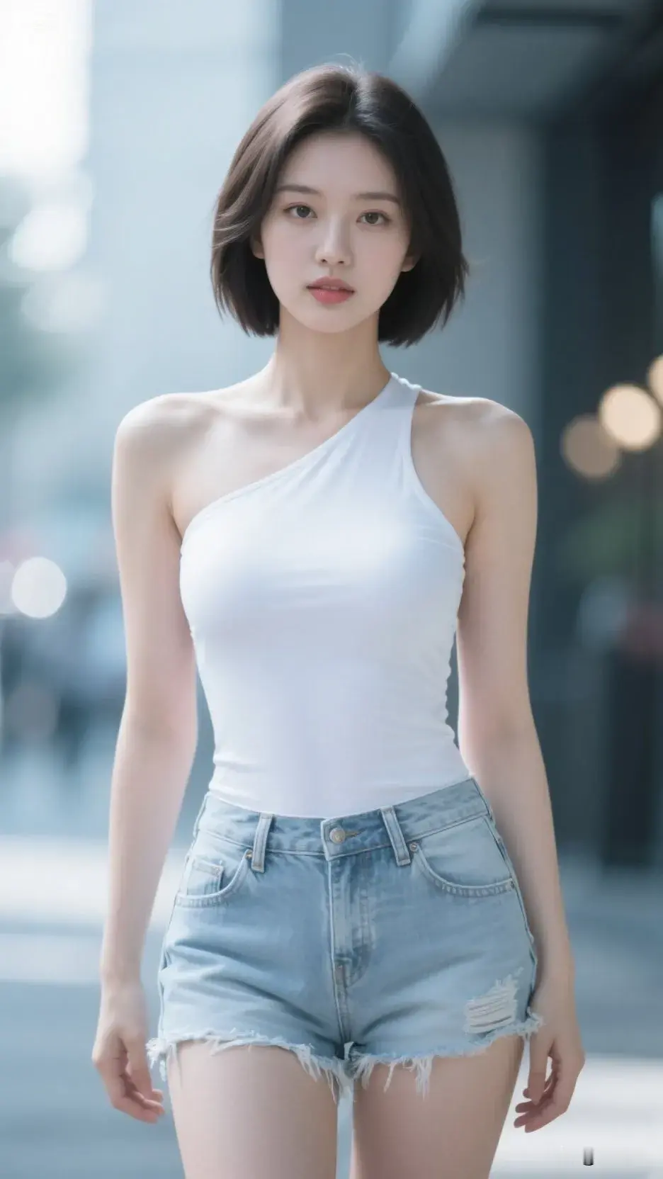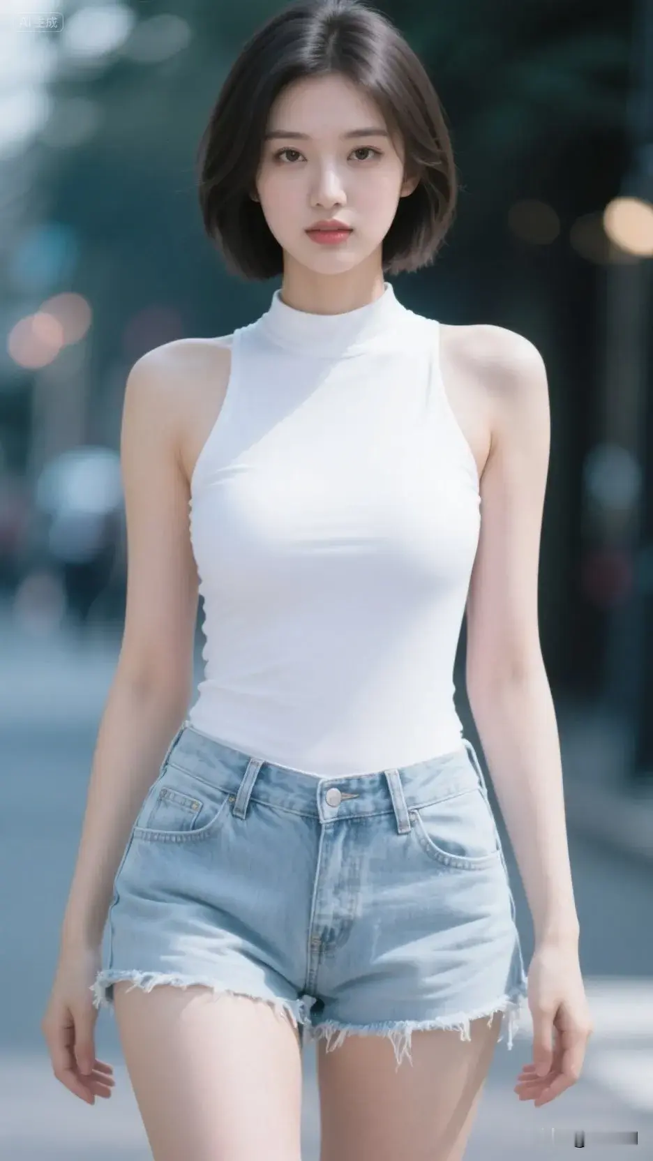 高颜值美女的穿搭:紧身衣配牛仔短裤,完美身材自带光环