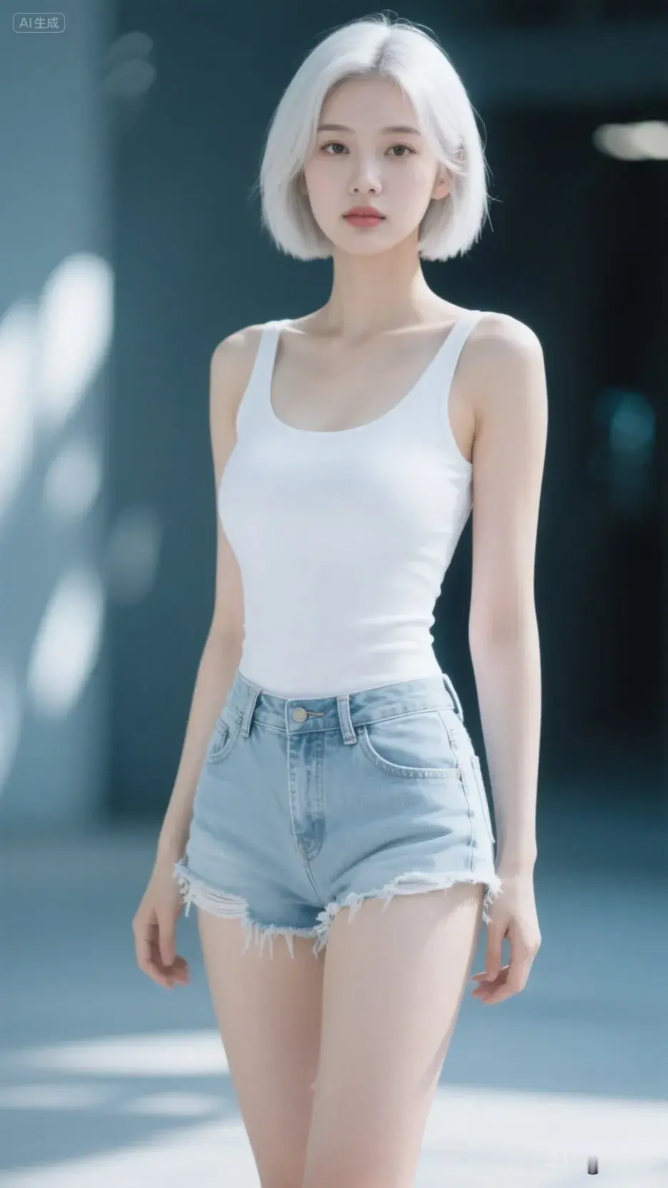 牛仔短裤的魅力,满屏的大长腿牛仔短裤穿搭淡蓝牛仔短裤露腿牛仔短裤牛仔蓝短裤