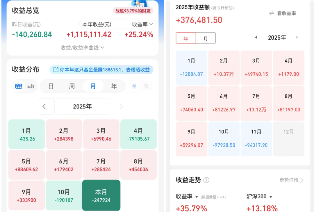 场外基金账户11月累计亏损25万了,10与11月两个月累计亏损44万;