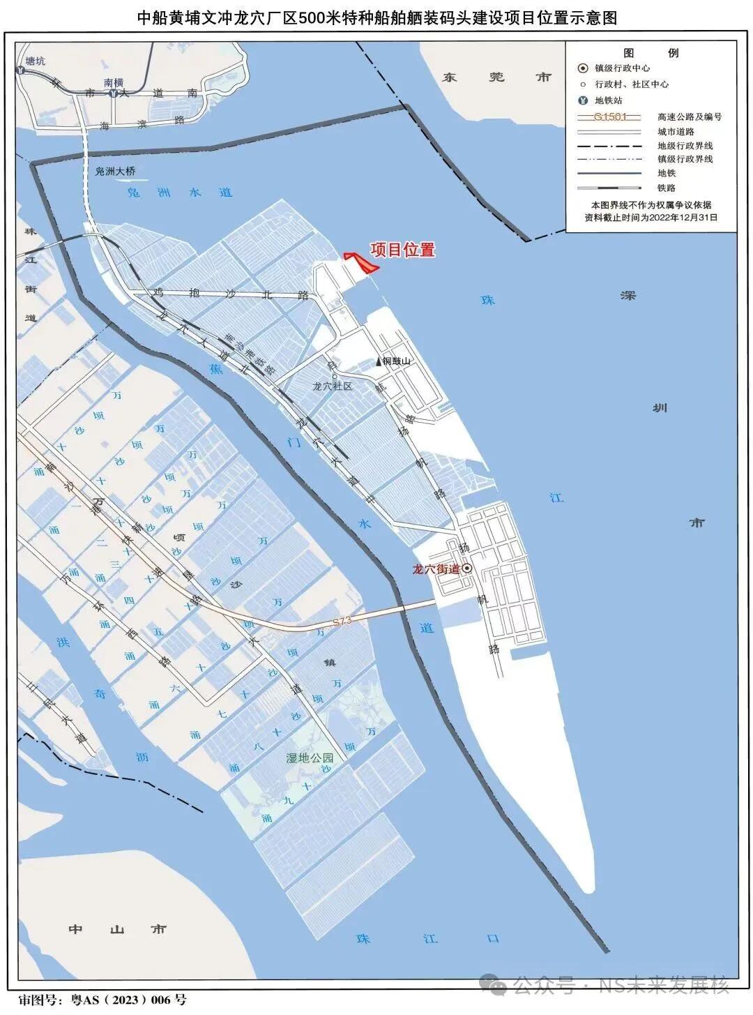 【中船黄埔文冲码头扩建开搞】广州市规划和自然资源局发布了两处“海域使用”公示,根据《中华人民共和国海域使用管理法》《广东省海域使用管理条例》及相关规定,现将龙穴厂区沉坞坑改造工程申请临时用海情况公示。用海申请单位为中船黄埔文冲船舶有限公司,项目位于广州市南沙区龙穴岛东北侧中船黄埔文冲船舶有限公司码头港池海域,拟申请用海总面积10.7816公顷,用海类型为工业用海,用海方式为其他开放式,拟申请临时用海时间3个月。 中船黄埔文冲龙穴厂区500米特种船舶舾装码头建设项目申请用海情况公示。 用海申请单位为中船黄埔文冲船舶有限公司,项目位于广州市南沙区龙穴岛东北侧。拟申请用海总面积10.6210公顷,其中码头用海(透水构筑物用海)面积  0.0125 公顷、港池用海(港池、蓄水用海)面积1.5603  公顷,拟申请用海期限37年;疏浚用海(专用航道、锚地及其他开放式用海)面积9.0482公顷,拟申请用海期限3年。 据悉该新建500米长码头(2个泊位,1和2),主要满足中船黄埔文冲船舶有限公司特种船舶建造的码头靠泊、舾装及试验需要,进一步提高造船整体效益。项目建成后每年可完成8艘主建船型舾装作业。