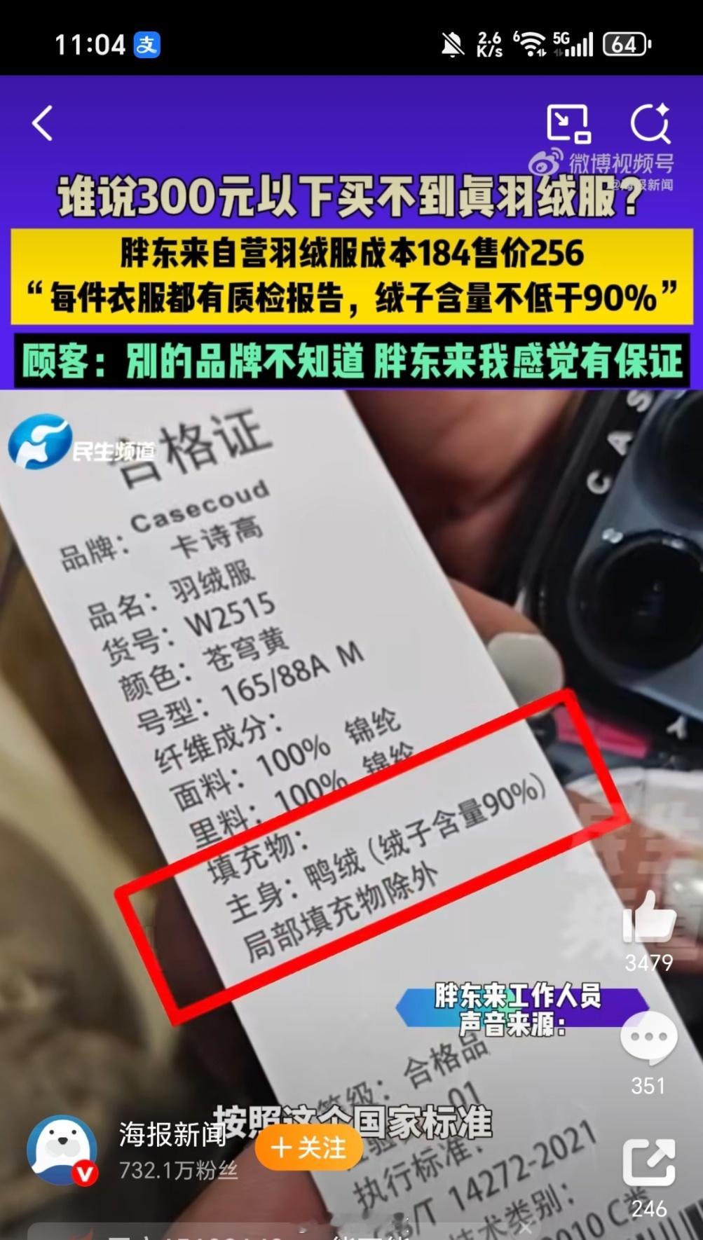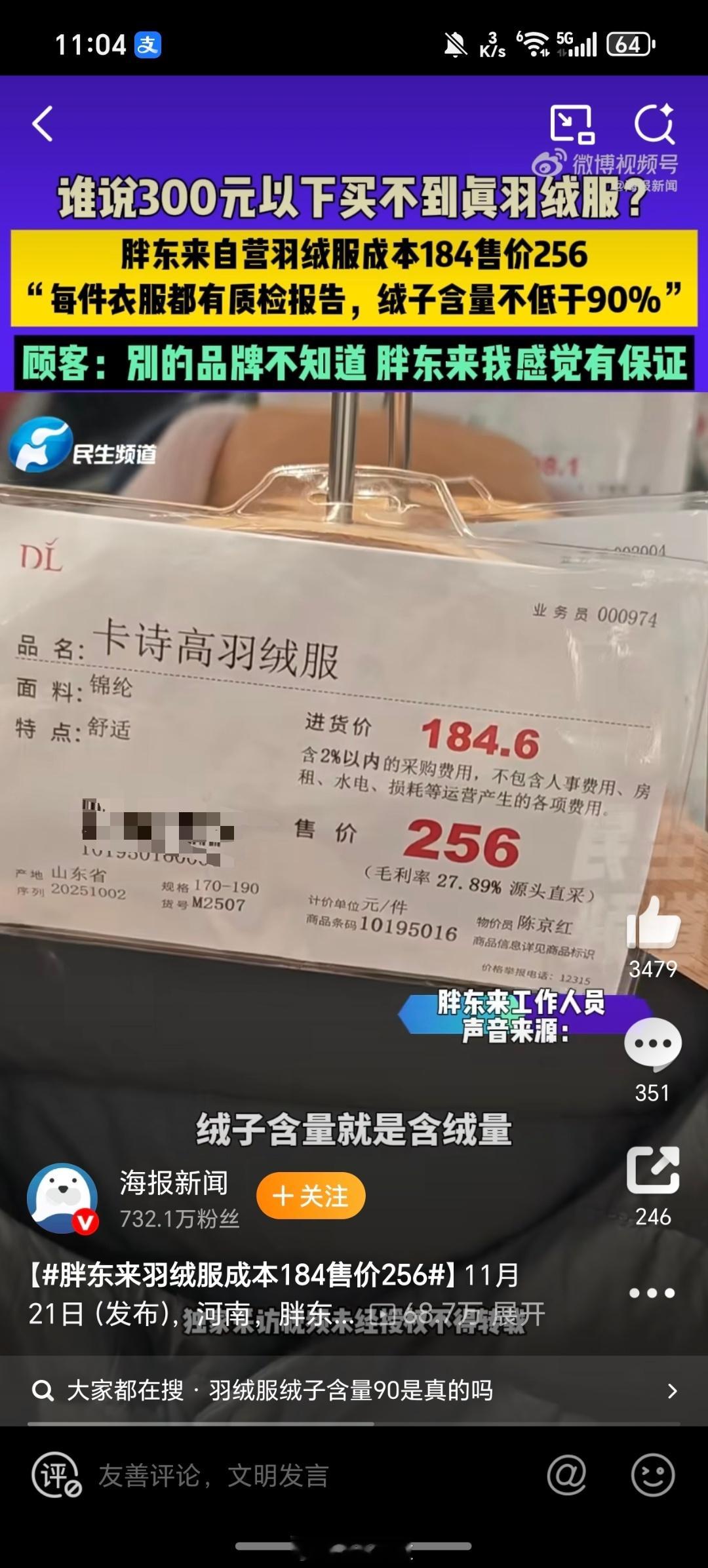 前两天商家还说五百以下都是假羽绒服。今天胖东来就来打 脸 了。 想不到羽绒服的利润真大啊。。。