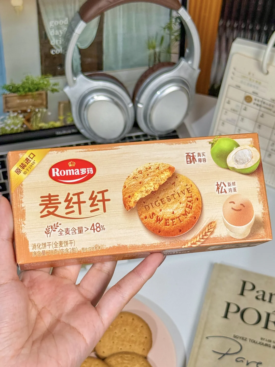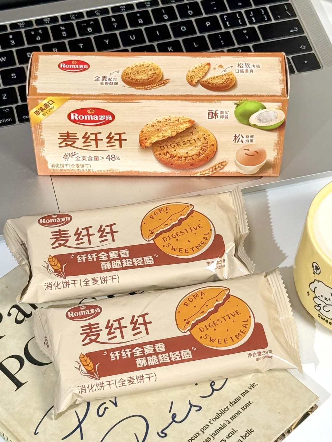作为一个每天下午三点必饿的打工人 以前总是纠结吃啥能不胖又顶饿​ 直到同事给我安利了Roma罗玛麦纤纤!​ 好好吃!真后悔没有早点知道!​ ​ 畅销60多个国家,品质和选材上都是严格把控​ 这款麦纤纤配料表真的很坦诚!​ 高全麦配方,富含膳食纤维,全麦含量高于48%​ 再添加新鲜鸡蛋+真实椰蓉,没有乱七八糟的添加剂吃起来很安心!​ 多炫几块完全无负担,瞬间“充值”能量!​​ 口感也好棒!酥酥脆脆的,一点都没有全麦的粗糙感​ 麦香浓郁不说,慢慢咀嚼还能吃到真实椰蓉 掰开搭配希腊酸奶和莓果就是精致下午茶​ ​ 独立包装的设计简直太懂打工人了!​ 办公桌抽屉随手放两包,随时补充能量💪​ 现在全办公室都被我种草了​ 同事都说这是“神仙零食”哈哈哈​ ​ 真心推荐给所有嘴馋的姐妹​ 无论是当早餐还是下午茶,这一包都能搞定!​ 关键是真的太好吃啦 都给我冲