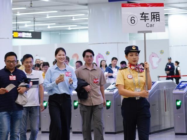 赛事期间,苏元、天河公园、黄村、大观南路4个开幕式重点站客流较日常有较大增幅,线网按“重点站点、重点时段、重点保障”原则,统筹推进客运组织、协同联动和乘客服务,并按“一站一策”制定现场客运组织预案,全面优化站内外客流流线,动态调整扶梯、闸机等关键设施运行和开启方向,设置300余处导向标识,投入1000余名工作人员现场值守和引导,为开幕式及各场赛事提供安全、便捷、有序的出行保障。