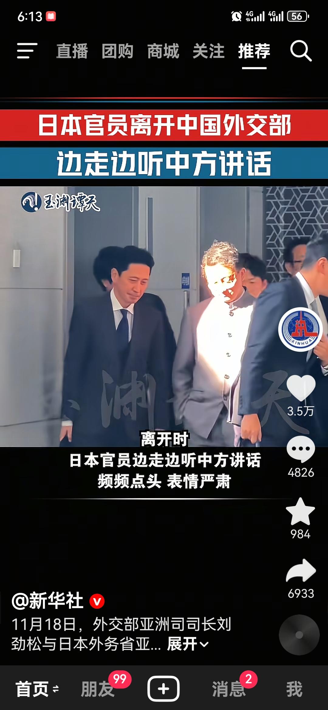 针对高市早苗的肆意挑衅,我们我们一直是立场坚定,决不让步,高市早苗不撤回言论决不罢休。 为了让日本的政府高层包括基层民众能够听明白中国的声音,我们尽可能的使用大白话。 玉渊谭天直接让高市早苗撒泡尿照照自己有几斤几两。 这话说的够明白了。 新华社还接地气的用了东北民间小调,谁再说东家长,李家短,就给他一电炮。 我们还暂时中断了中日友好的一切活动。 暂停进口日本的部分农产品,海产品。 暂缓中国公民赴日旅行。 在东海黄海军事演习,向联合国各成员国致函,引用联合国宪章关于敌国认定的条款。 高市早苗,如果再一意孤行,必将自取灭亡,早日滚下台来。