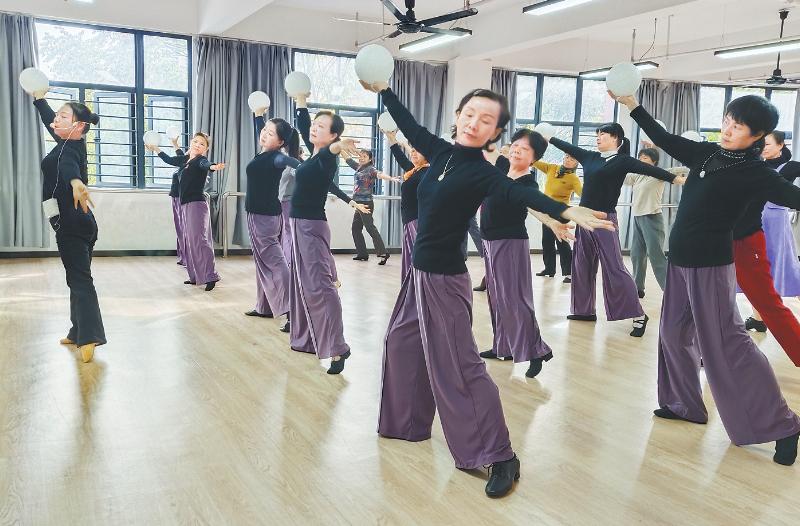 市老年大学紫金山教学点正在开展形体舞蹈课。余琳虹摄