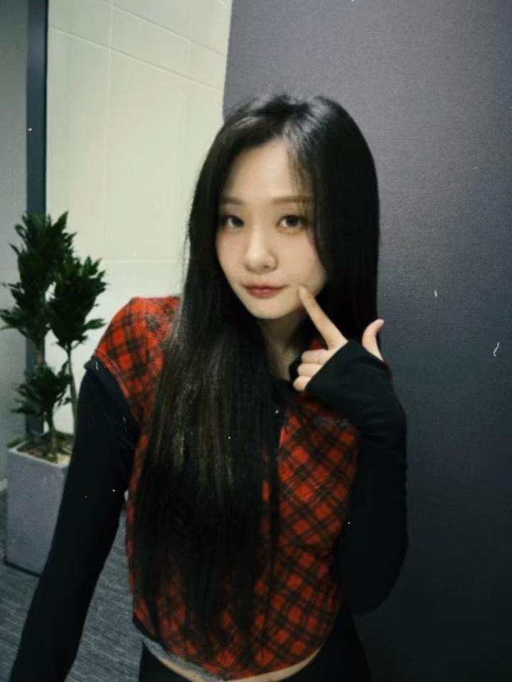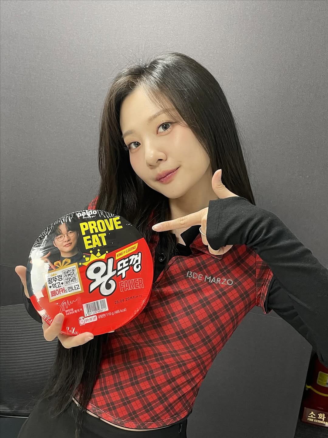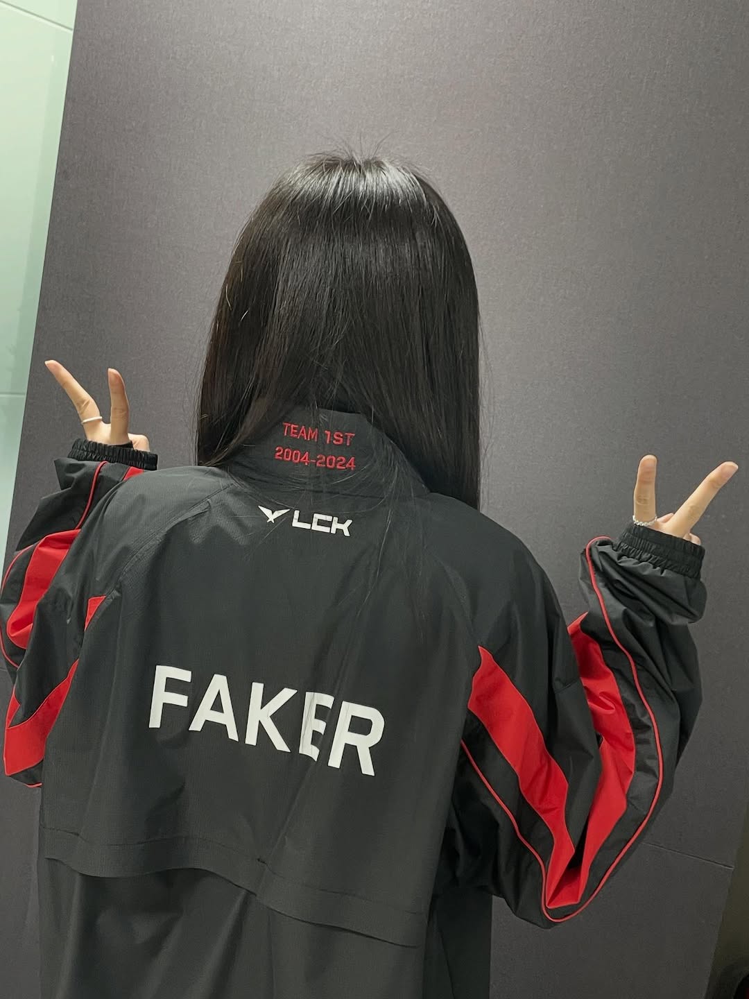 虎扑11月22日讯韩国女子演唱组合脸红的思春期成员安智煐跟Faker合影: