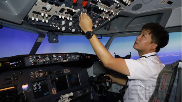 培训中心一楼的两个全动飞行模拟机内,飞行员们正在进行高强度的特情处置训练,这场模拟机培训,是考试前几名的“优等生”奖励。