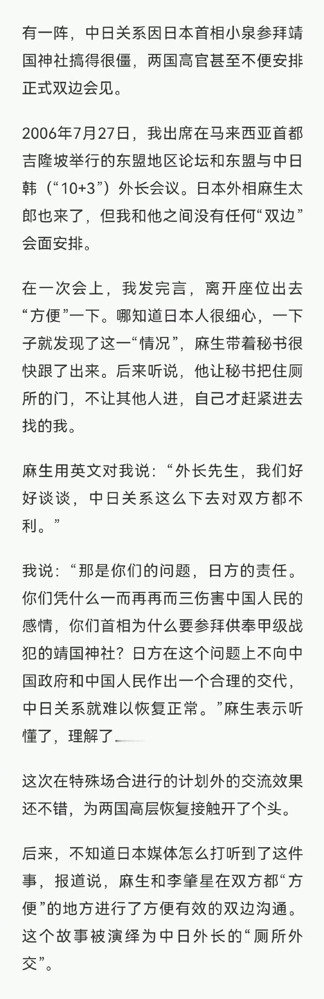 一句“请日方自重”,藏着多少历史与现实的警醒? 毛宁在外交部记者会上掷地有声的“请日方自重”,短短五个字,不是凭空而来的强硬,而是对一个“前科累累”却不知收敛的邻居,最直白的警告。 说起日本政客的“奇葩操作”,前外长李肇星的一段往事至今听来仍让人哭笑不得。2006年中日关系因小泉参拜靖国神社陷入僵局,两国外长连正式会晤都无法进行。 可在吉隆坡的亚洲外长会议上,时任日本外相的麻生太郎竟玩起了“堵门”——趁李肇星去洗手间的空档,让秘书把住门口,自己闯进去追问“为何躲着他”。李肇星当场直言:“不是我躲你,是你们领导人参拜靖国神社,惹火了中国人民。” 就是这样一场洗手间里的严肃交涉,被日本媒体硬生生美化为“厕所外交”,把失礼当成佳话,把错误包装成善意,这操作也算没谁了。 可如今再看,当年的“厕所外交”好歹还有点沟通的诚意,现在的日本政客,连装样子都懒得费心。新上任的首相高市早苗,刚坐稳位置就公然踩红线,宣称“台湾有事可能构成日本存亡危机事态”,明晃晃为武力介入台海找借口。要知道,《中日联合声明》里写得明明白白,日本承认台湾是中国领土不可分割的一部分,遵循《波茨坦公告》的立场,这是两国关系的政治基础。可高市早苗倒好,一边否认侵略历史、长期参拜靖国神社,一边妄图修改“无核三原则”扩军,现在又在台湾问题上大放厥词。 中方多次严正交涉,要求撤回错误言论,日方却嘴硬到底,只敢说“立场未变”,对撤回二字绝口不提。更讽刺的是,一边在台湾问题上越线玩火,一边还惦记着在G20峰会上搞“开放式接触”,仿佛只要自己姿态够“开放”,就能抹去之前的挑衅。这不是自欺欺人吗? 要知道,日本民众都已经看不下去了。上千人聚集在首相官邸前抗议,高呼“不要让日本陷入危险”,连日本媒体都直言“高市首相的存在本身可能成为日本的存亡危机”。经济上,日本10月核心CPI上涨3%,粳米价格飙升近四成,原定的中日文化交流活动纷纷取消,企业访华计划推迟,高市的错误言论正在让日本自食苦果。 台湾问题是中国核心利益中的核心,是红线也是底线。当年日本殖民台湾半个世纪,犯下的罪行罄竹难书,《开罗宣言》《波茨坦公告》早已明确台湾必须归还中国,这是铁打的历史和法理事实。现在日本政客想重走老路,一边对历史毫无敬畏,一边在台海问题上煽风点火,真以为中国还会容忍吗? 毛宁两次明确表态“没有与日方领导人会面的安排”,已经把态度摆得清清楚楚:尊重是相互的,诚意是谈出来的前提。你都拿着刀子冲到别人家门口了,还指望别人笑脸相迎? 日本该醒醒了,“厕所外交”的时代早已过去,耍小聪明、玩文字游戏骗不了任何人。要么立刻收回错误言论,切实履行承诺;要么继续在错误的道路上狂奔,承受越来越重的后果。毕竟,中国人民捍卫国家主权的决心,从来不是说说而已。