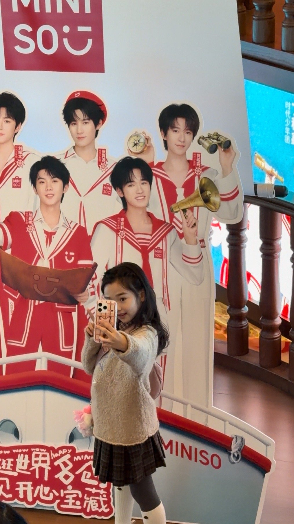 谁还没见过这么可爱的小酒窝!跟妈妈逛街看到时团(立牌)马上跑去合影,这追星反应也太真实了,果然9岁正是藏不住事的年纪🤣还买了时团同款,爆米花属性也藏不住了!