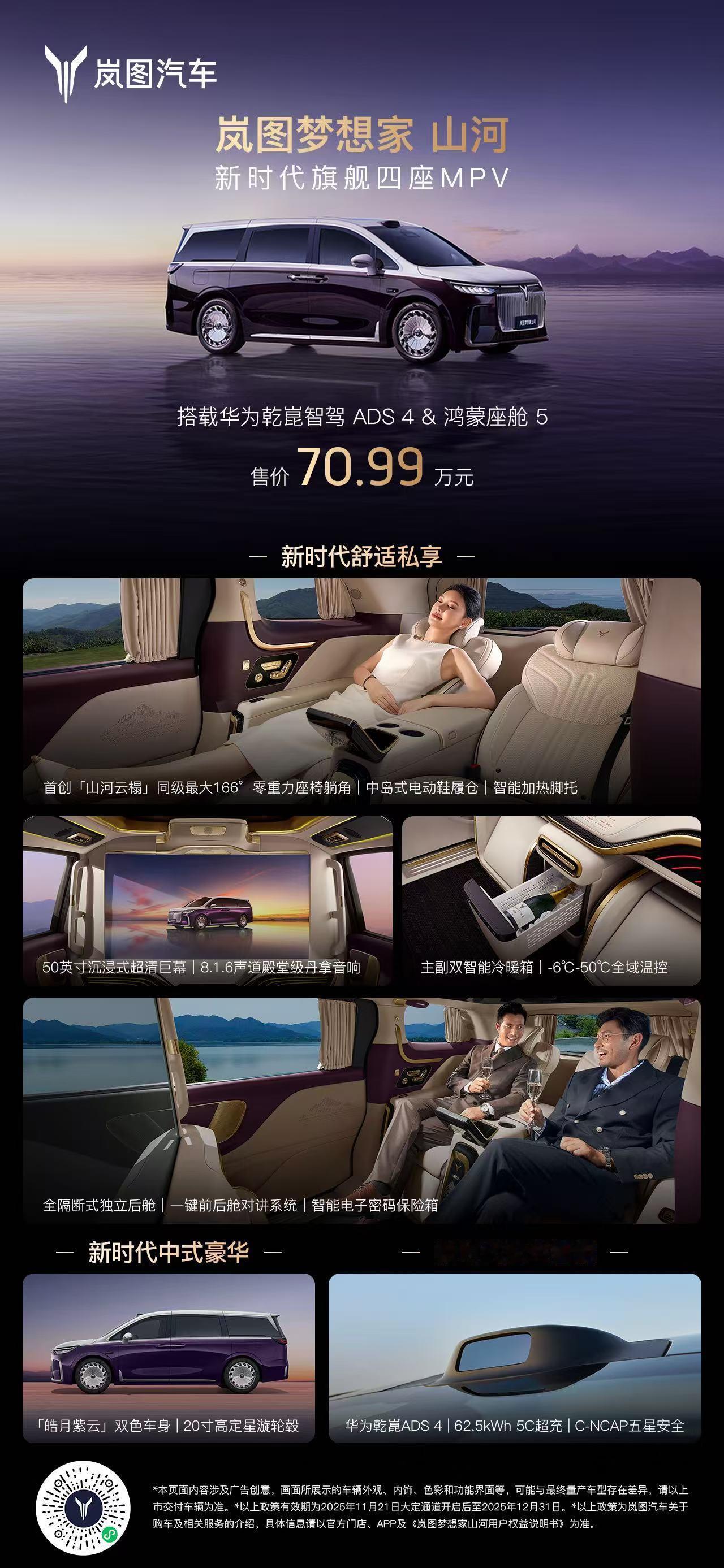 【岚图:泰山订单很好,但还是居危思危?】岚图最近正在经历快速的发展。旗舰SUV泰山发布之后订单快速提升,车展上发布的全新梦想家 山河也在车展上发布,四座版本的顶配商务梦想家,达到了70w的售价区间。中式豪华的认知,是岚图敢于打出「山河」这张牌的市场。发布会之后,岚图的卢放、邵明峰和李博晓回答了媒体提问。我挑了俺哥最有意思最劲爆的信息:「关于轴向磁通电机」:去年好像预热过轴向磁通电机,现在没有使用,是不是它的可靠性或者成本没有到量产的程度?卢放:轴向磁通电机,我们的公告里其实报了,但确实从成本来讲不是特别友好。因为这个产业在我们国内还不是特别普及,所以还要等更合适的时机。我们推出每一项的装备、技术,首先要对用户负责任,我不能为了新而新,不能拿市场当试验场,我们还要守住一些可靠性、安全性的底线。成本对于用户来讲,也是一个非常关心的问题,成本对于用户不友好的话,也不是一个好时机,我们应该再等一等,把这个产业的价格做下来之后,再推向真正的C端市场,如果有用户特别想尝鲜,我们也可以弄一弄。 「中式审美,如何出海?」岚图已进入欧洲、中东等海外市场。在全球化进程中,岚图更倾向于塑造统一的全球形象,还是注重针对不同区域进行深入本土化?下一步海外扩展的重点区域是哪里?卢放:全球统一的形象和本土化不矛盾,不是对立的,我们把它有机地统一起来。岚图会保持全球统一的品牌形象,同时在各地市场结合当地需求做一些产品的适应性变化或服务改善。未来在海外市场拓展方面,首先还是要深耕欧洲和中东,要把欧洲能够把这个基础做好。欧洲作为汽车工业发源地,有深厚的汽车文化理解,我们作为外来者要在欧洲站稳脚跟是一个重要课题。全球有广阔天地,有很多的区域实际上还没有被开拓,我们还会关注中东、拉美等"一带一路"沿线市场,这些区域还有很多开拓空间。「岚图已经成了么?」岚图品牌的高端化,区别于其他友商,最大的竞争优势是什么?卢放:刚才好多说我们已经成为央国企里面新能源做得比较好的,我觉得我们要冷静,虽然暂时有一些成果和成绩,但是要【居危思危】,在当前的环境下不进则退,竞争很激烈,市场变化很快,我们不能有任何怠慢。未来我们无论在产品上、技术上,还是在服务上还是要不断提升。企业内部经营的效率也要不断提升。