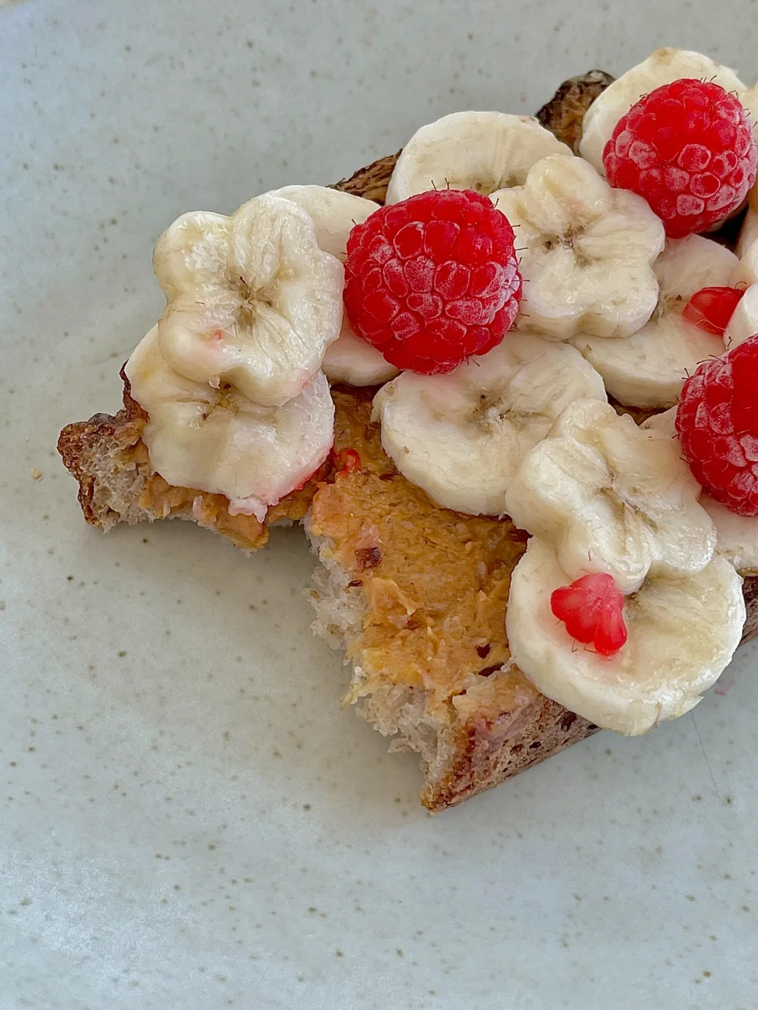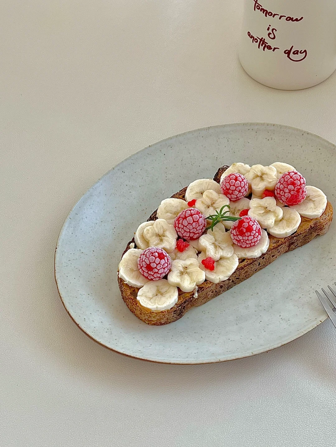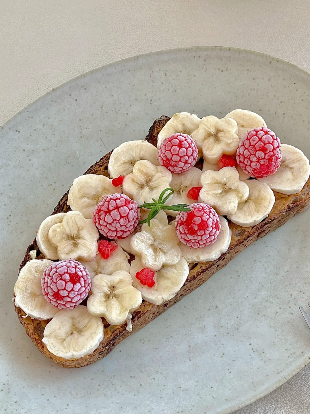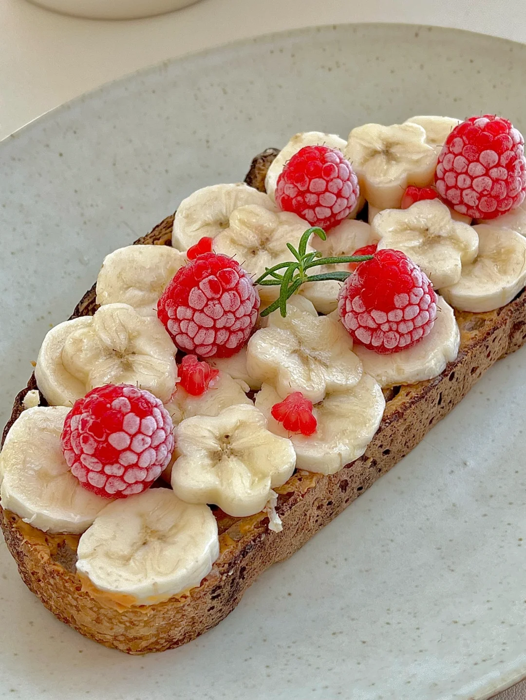☀️花生酱香蕉树莓开放式三明治|一片不够吃