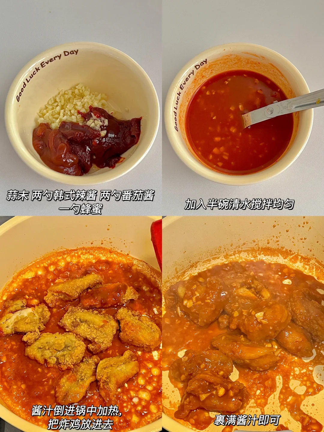 2️⃣用一半脆皮炸鸡做韩式蒜香蜂蜜炸鸡