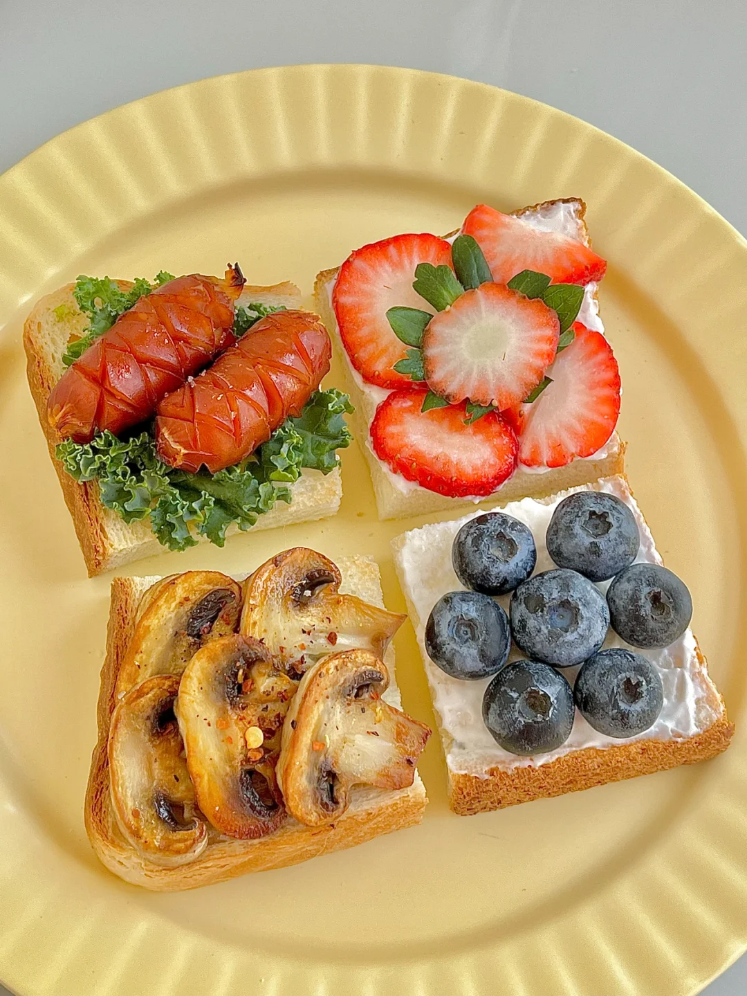 ☀️12.9日工作日早餐|开放式四拼三明治🥪