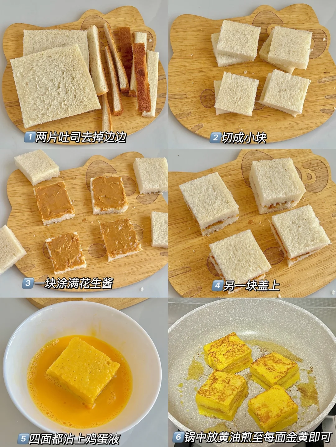 3️⃣一块涂满花生酱,盖上另一块吐司块。