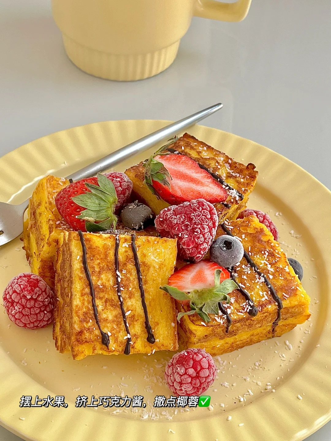 今日份早餐:莓果花生酱西多士😋,一杯美式☕️