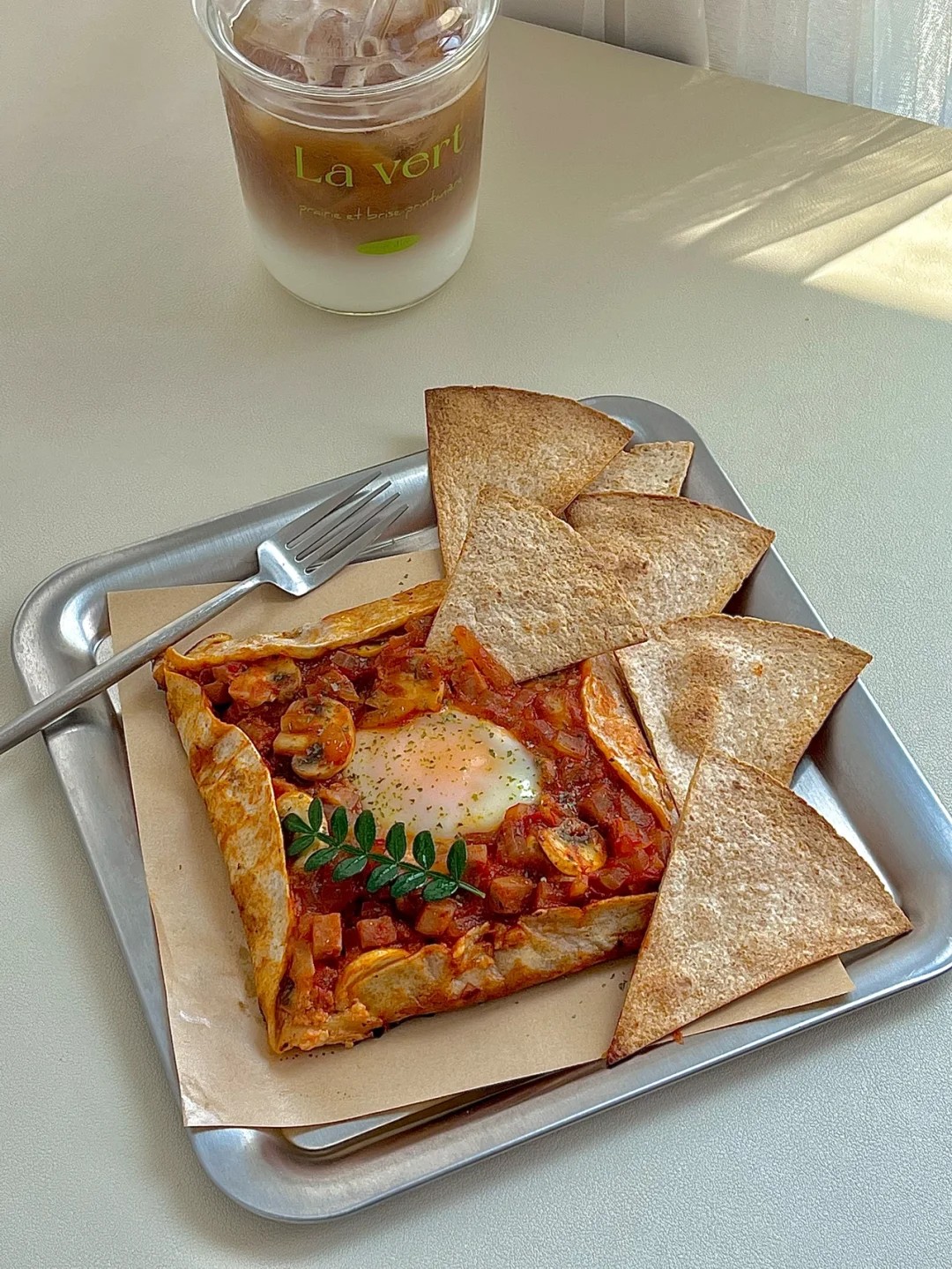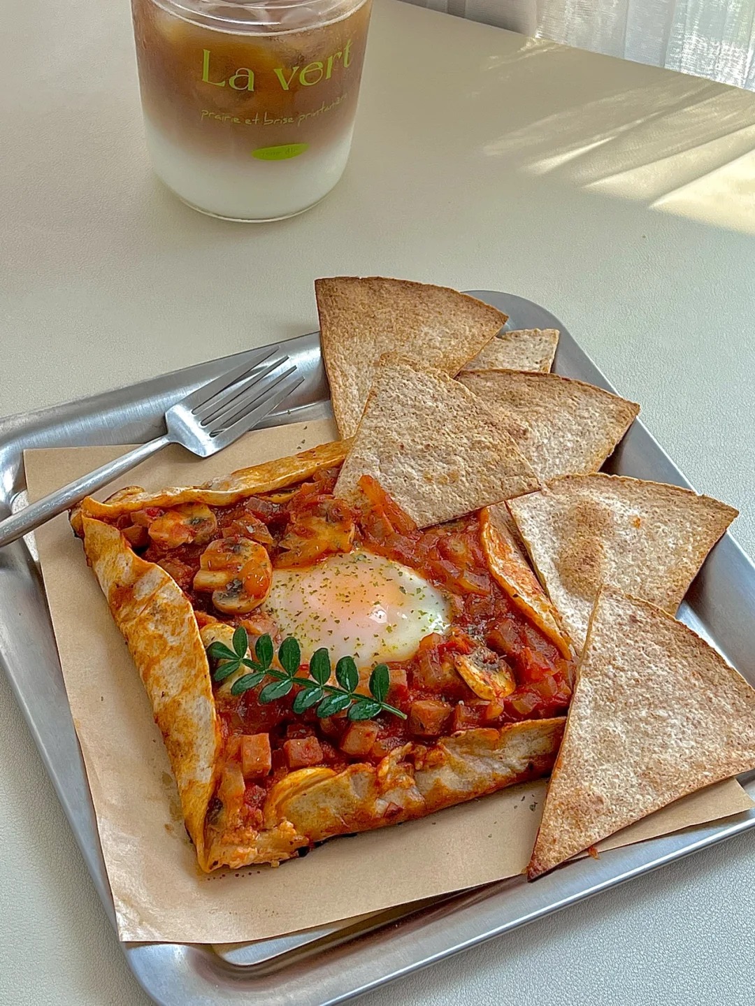 今日份早餐分享:被我塞的满满当当的可丽饼北非蛋|烤箱烤的嘎嘣脆的全麦饼皮|一杯冰拿铁☕️