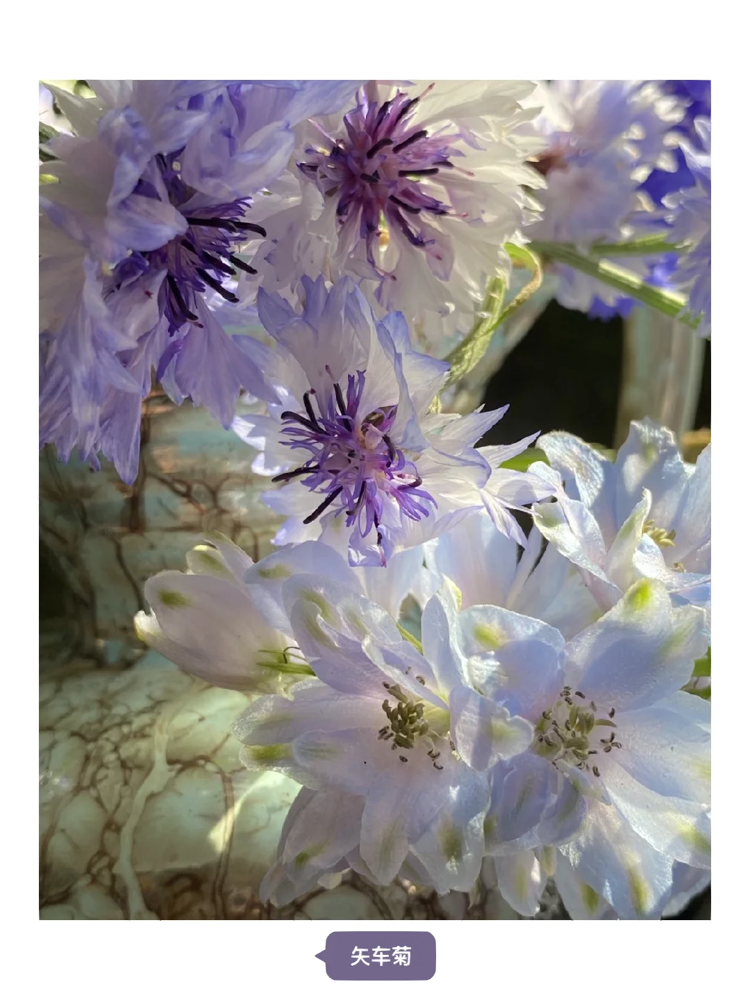 上方的是矢车菊,下面的是大飞燕,都是自然生长出的蓝紫色花花,在自然界中蓝紫色花很少,它们也是其中的颜值担当。