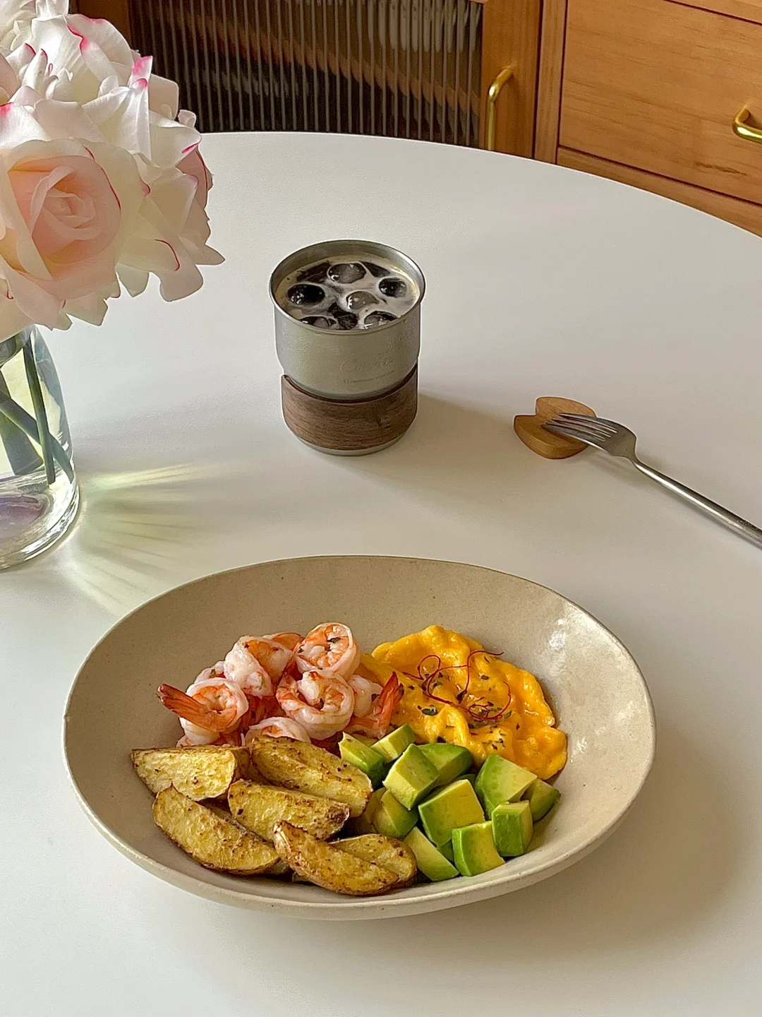 ☀️工作日早餐|烤土豆🥔煎虾仁🍤滑蛋沙拉🥗