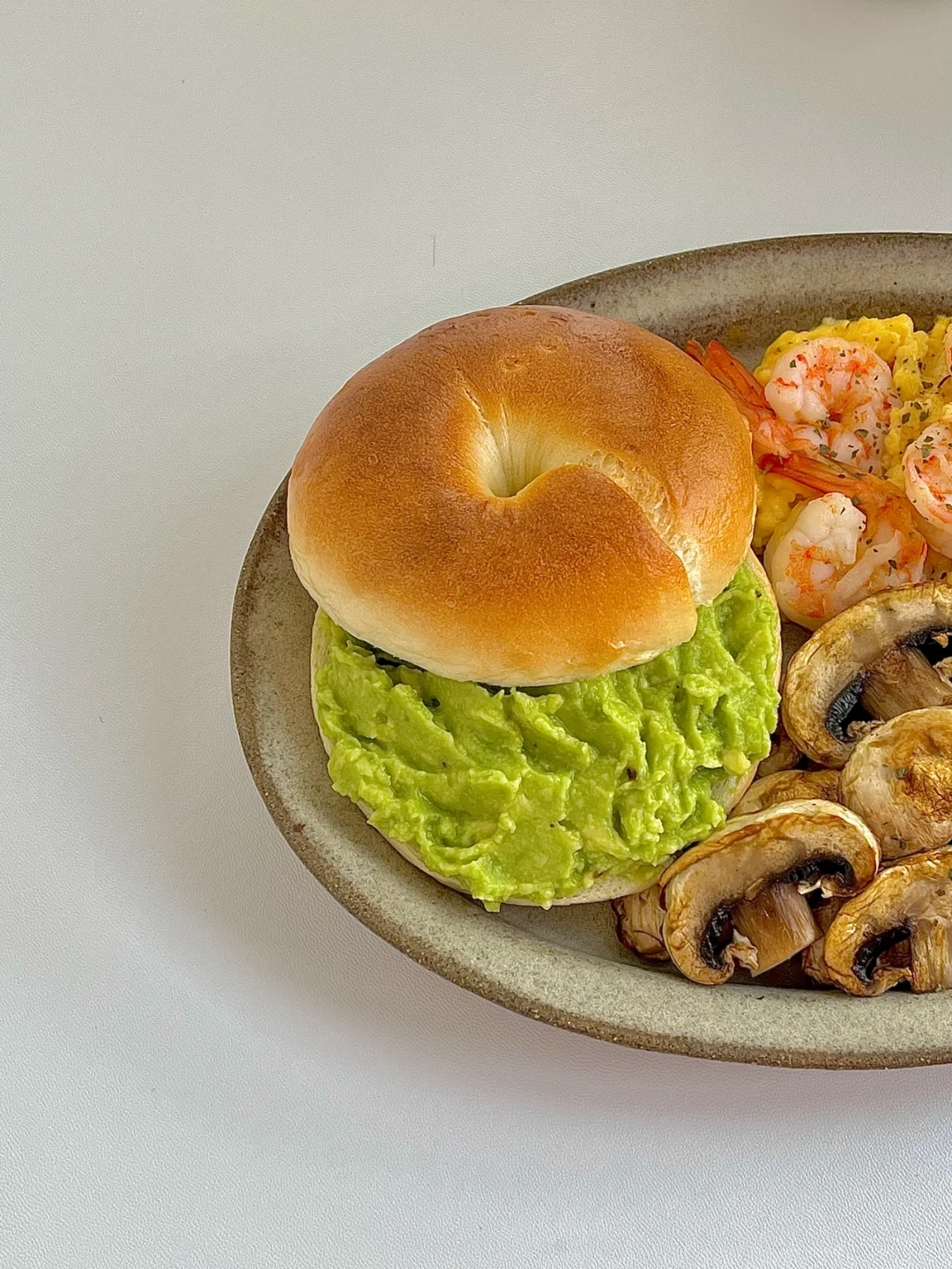 ☀️工作日早餐|牛油果贝果虾仁滑蛋早餐盘😋