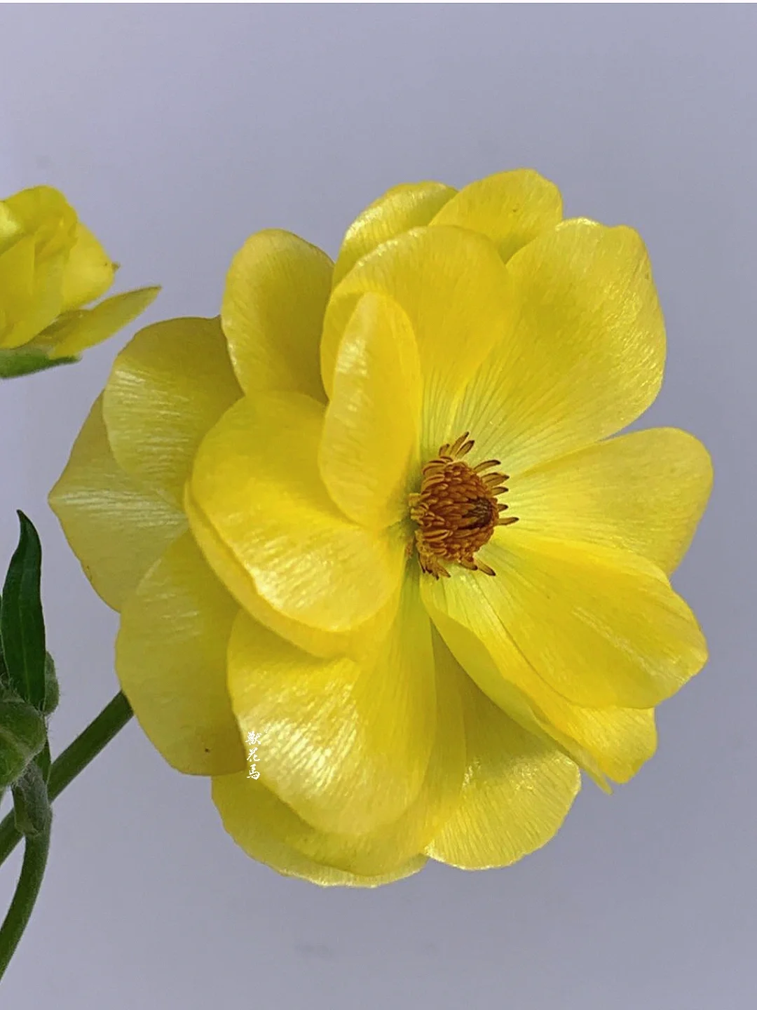 蝴蝶洋牡丹也是单瓣花毛茛的一种,花瓣十分轻盈,层数少,姿态柔和优雅,正如她们的名字一样轻盈。最值得一提的是它花瓣在阳光下的蜡质花材,像丝绸一样闪闪发光,是很少见的珠光感花材。