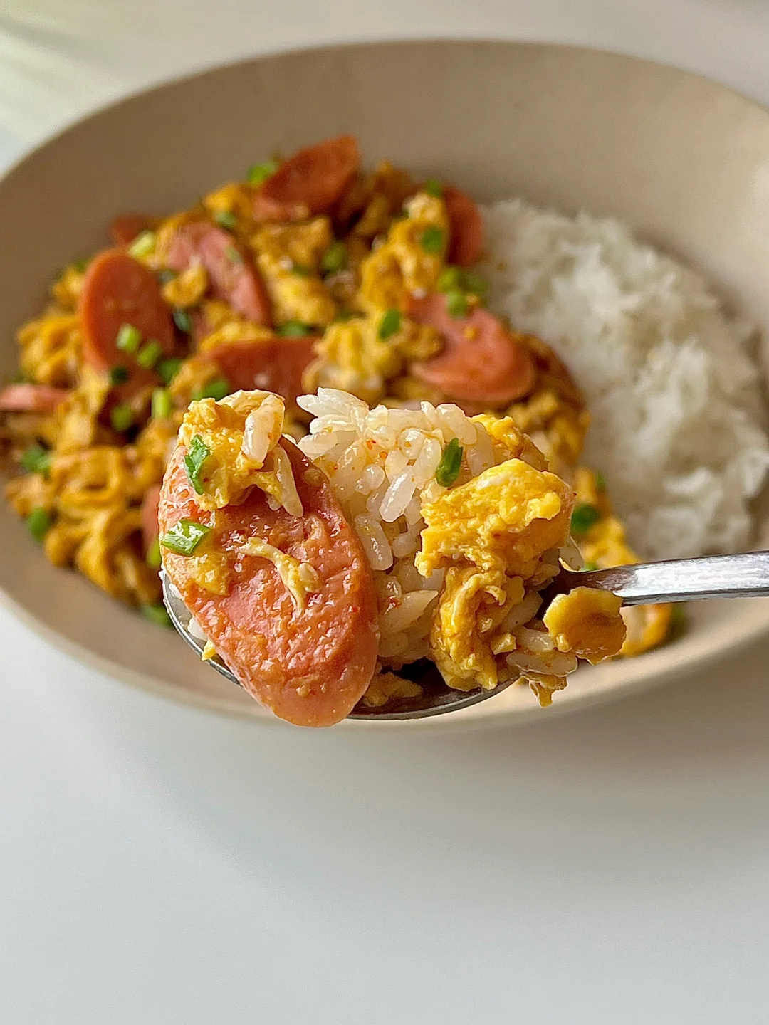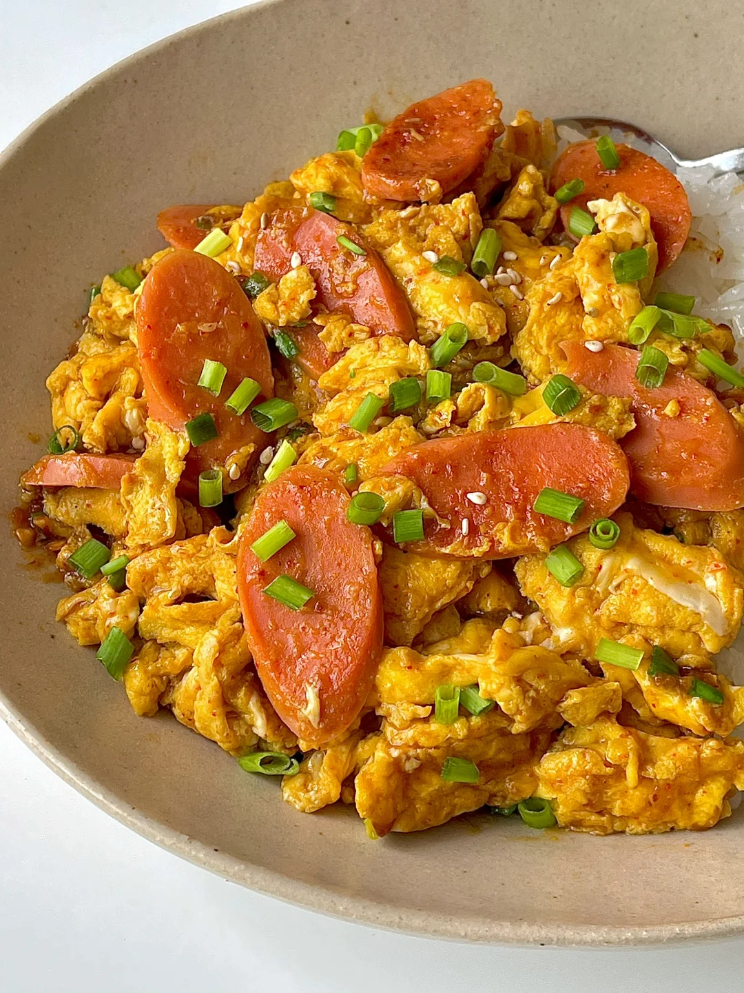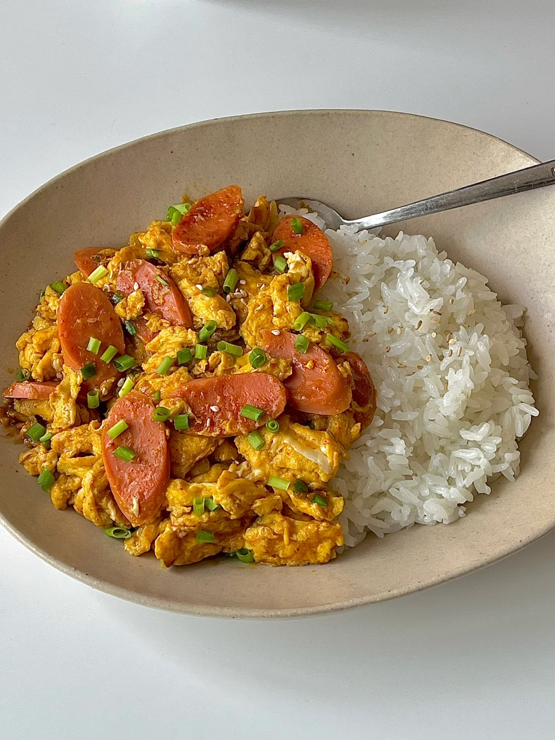 ☀️周末的早午餐|巨下饭的火腿肠炒蛋盖饭😋