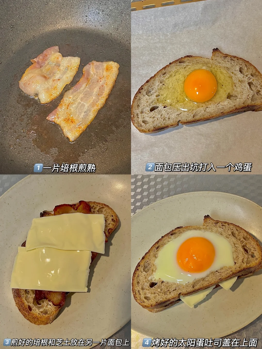2️⃣一片面包中间压出坑打入一颗鸡蛋。