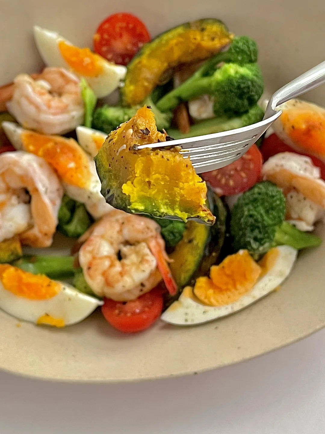 ☀️工作日早餐|低卡饱腹南瓜虾仁鸡蛋沙拉🥗