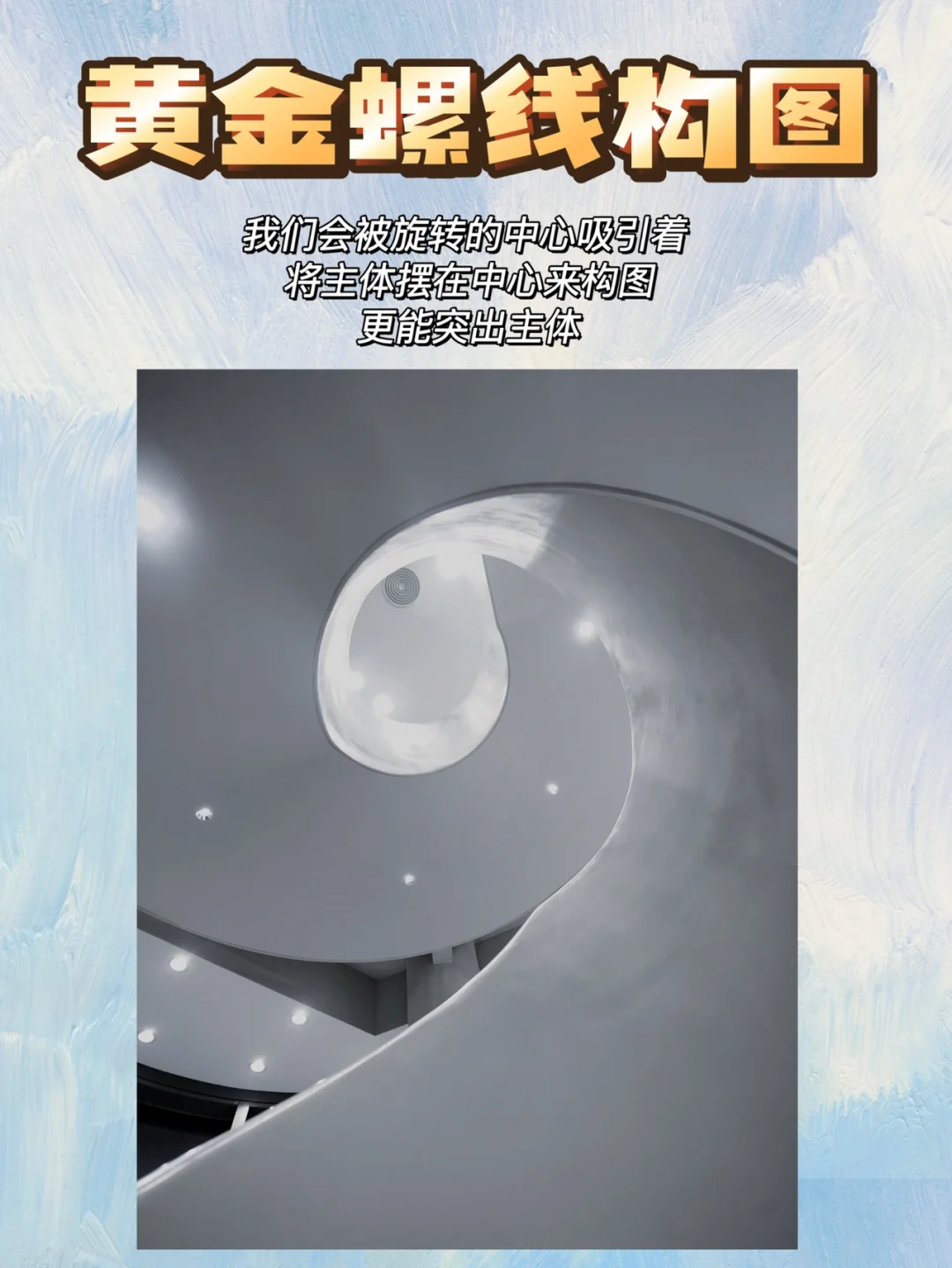 人的视觉容易被螺线中心吸引,可以将主体放在中心处,它会让图更有空间感。
