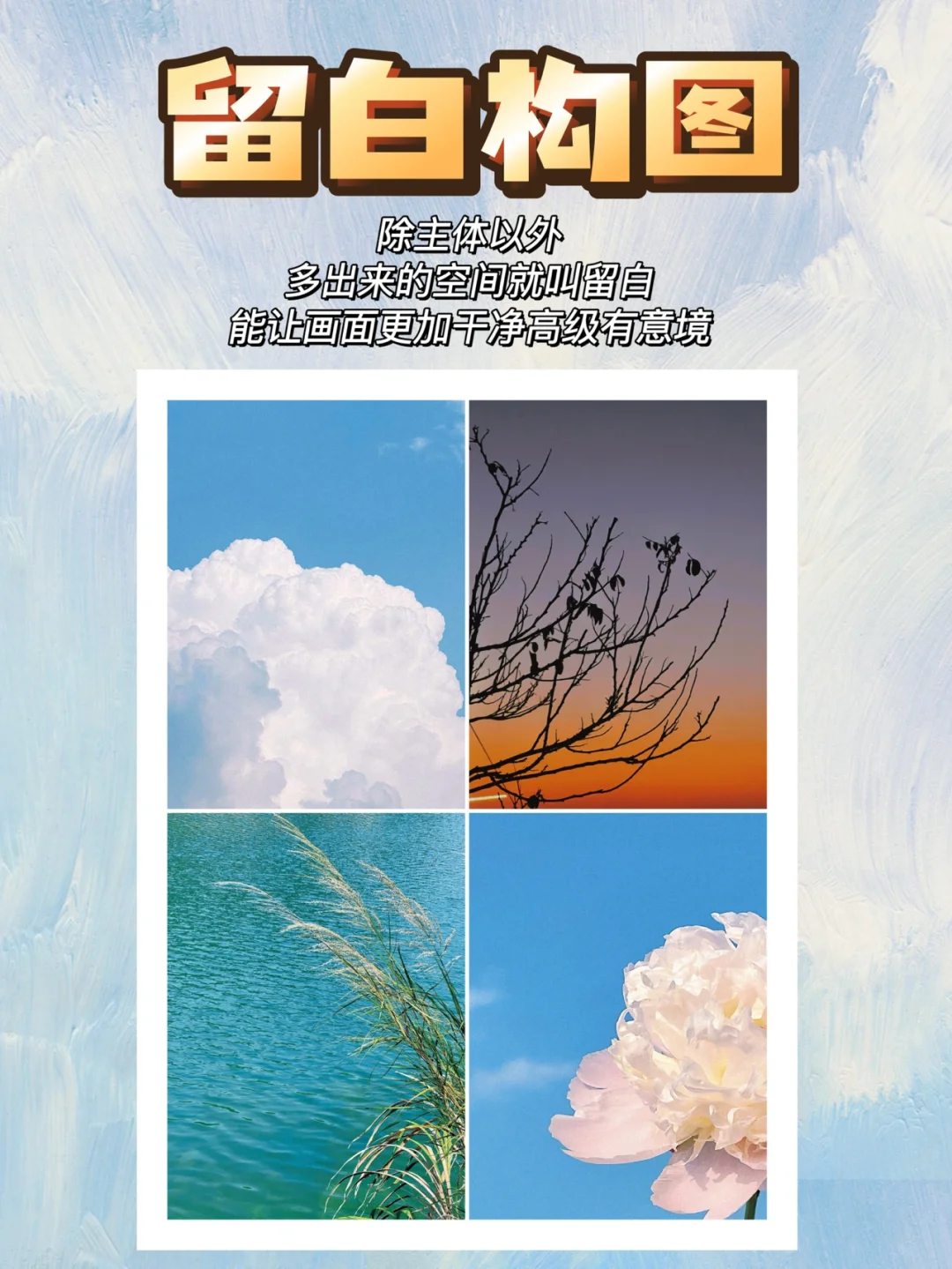 除主体以外留出来的空间称为留白,它会让图更有高级和更有情绪。