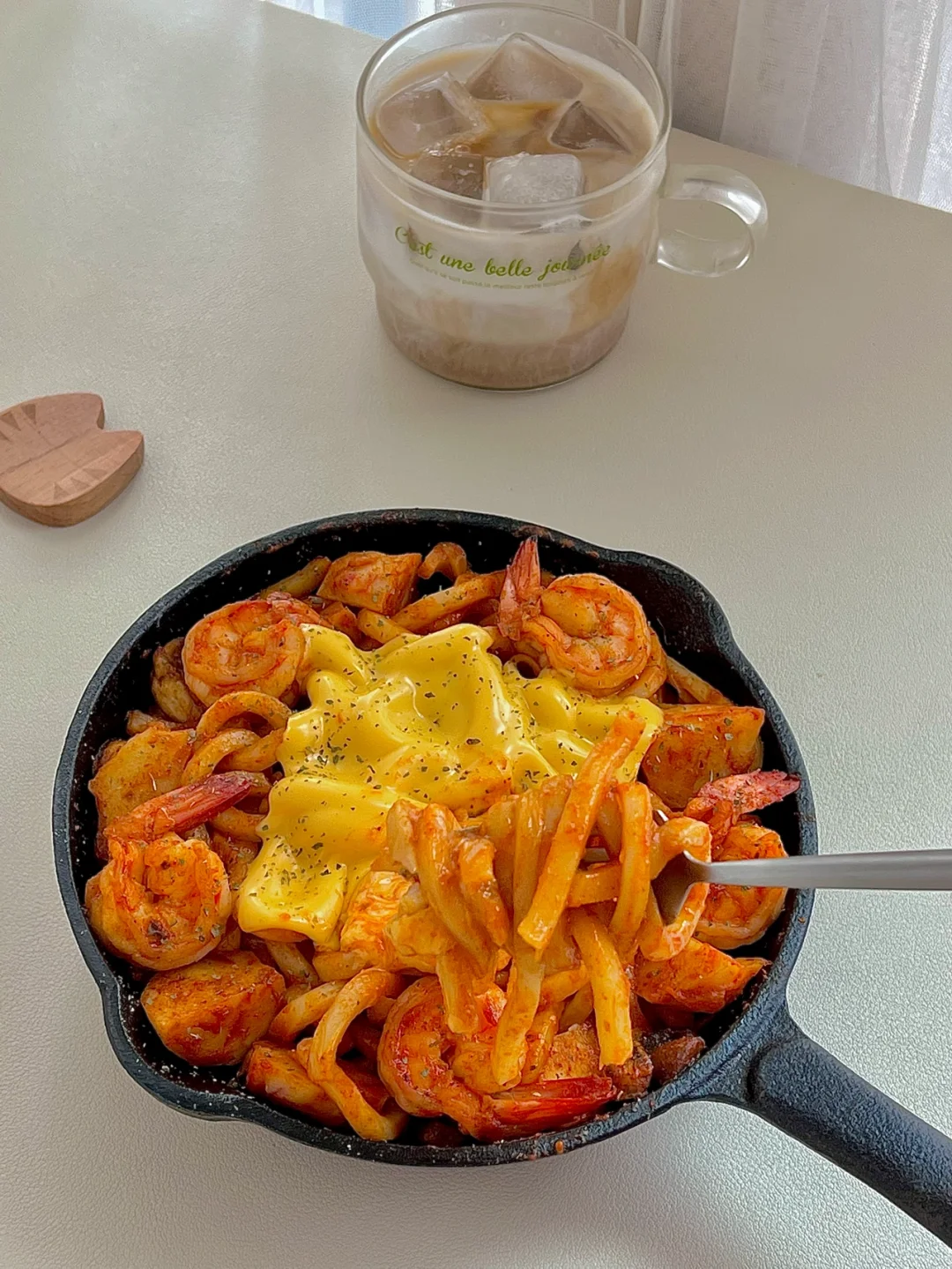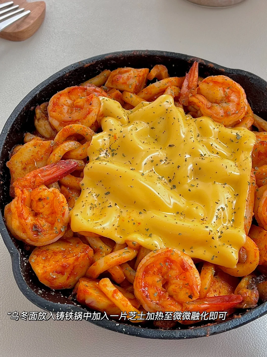 ☀️韩式虾仁芝士炒乌冬面|周末该有的早餐😋