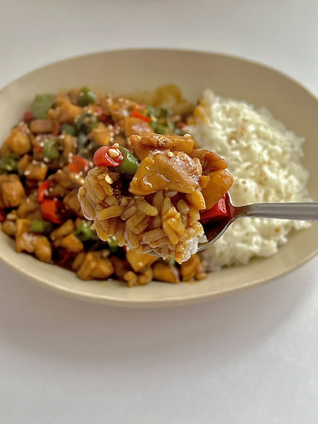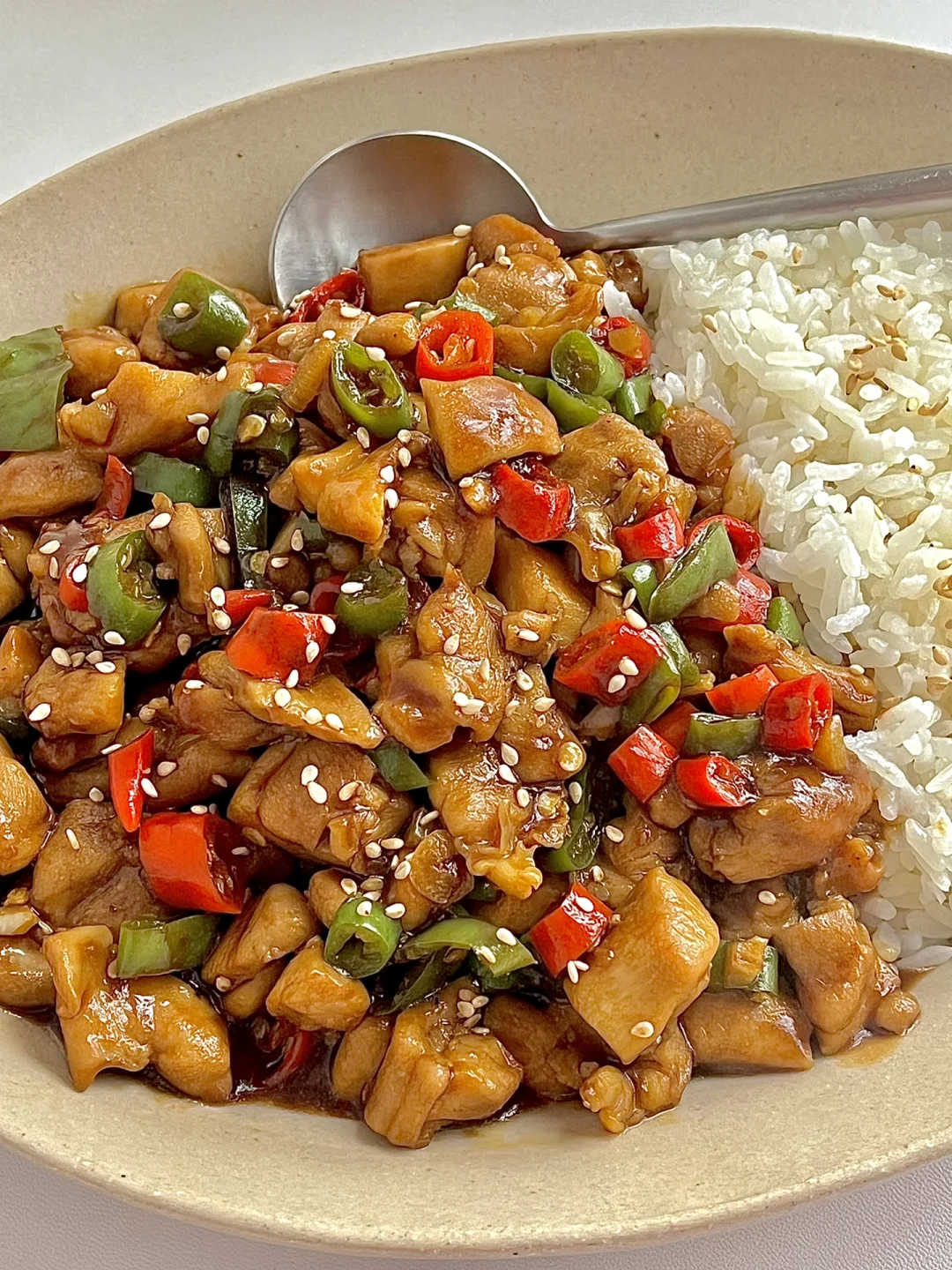 用到了周末的早午餐时间,今天来一份辣的过瘾的双椒鸡丁盖饭,还是用鸡腿肉做出来好吃😋