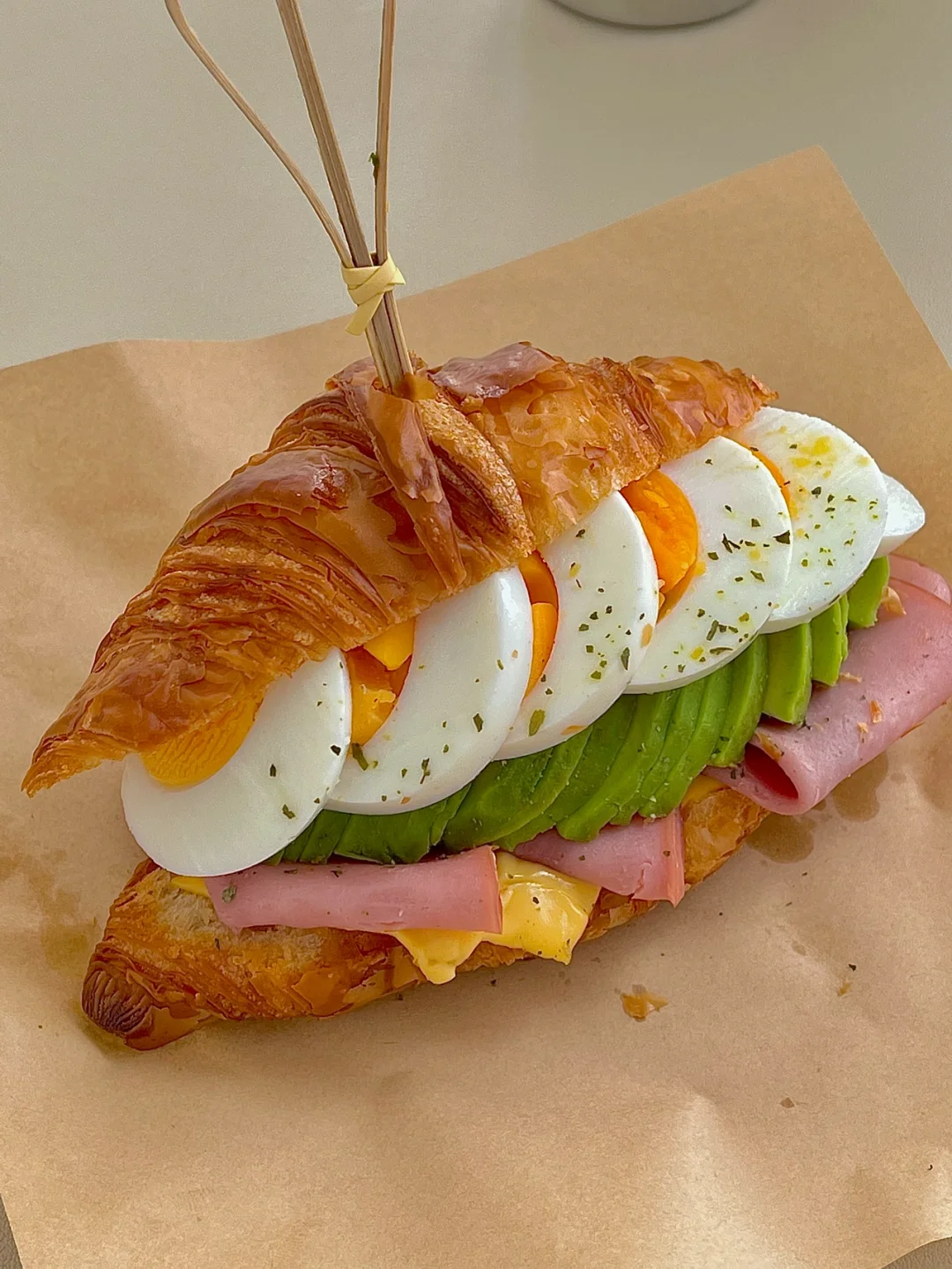 ☀️工作日早餐|火腿芝士牛油果鸡蛋小可颂