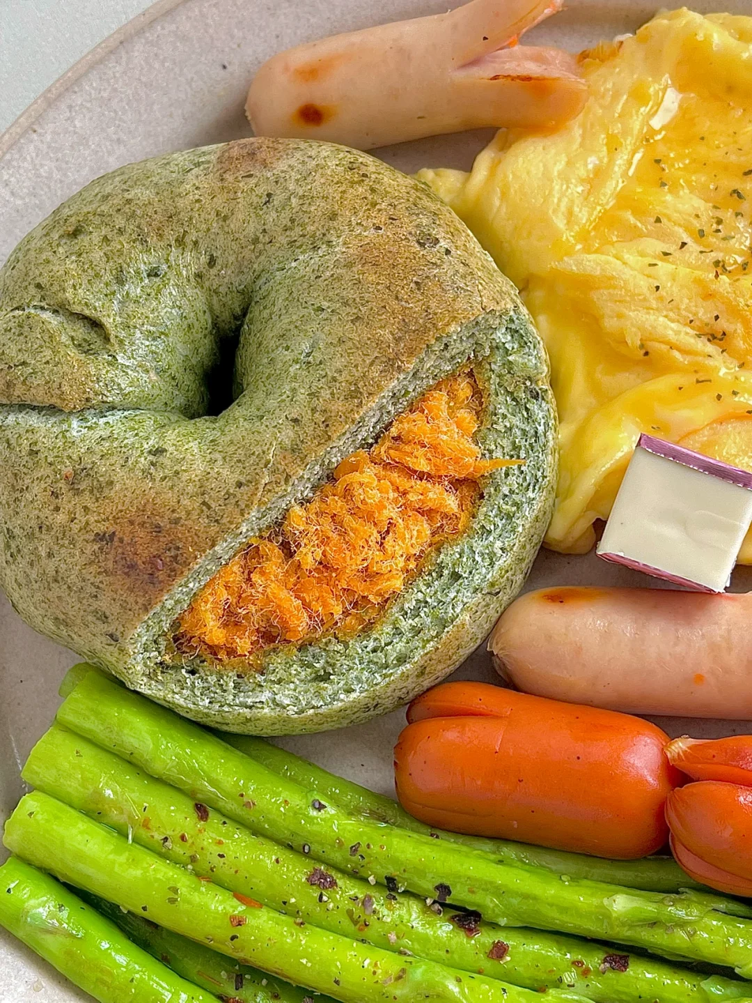 ☀️工作日早餐|海苔肉松贝果的一盘端早餐盘