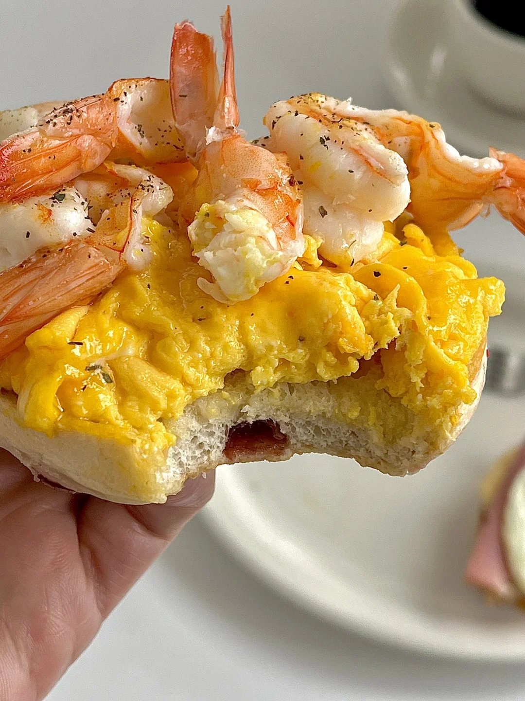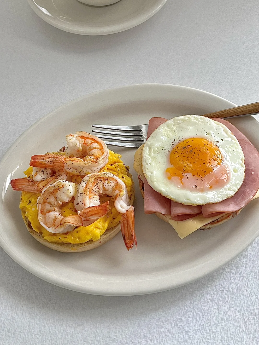 热气腾腾的三餐 今日份早餐分享: 芝士火腿鸡蛋贝果开放式 滑蛋虾仁贝果开放式 . 今天的双拼是鸡蛋主题的 我今天就想多吃一个鸡蛋,要足足的蛋白质😋 不知道吃什么的时候来个贝果双拼准没错 简单快手,最重要真的吃不够