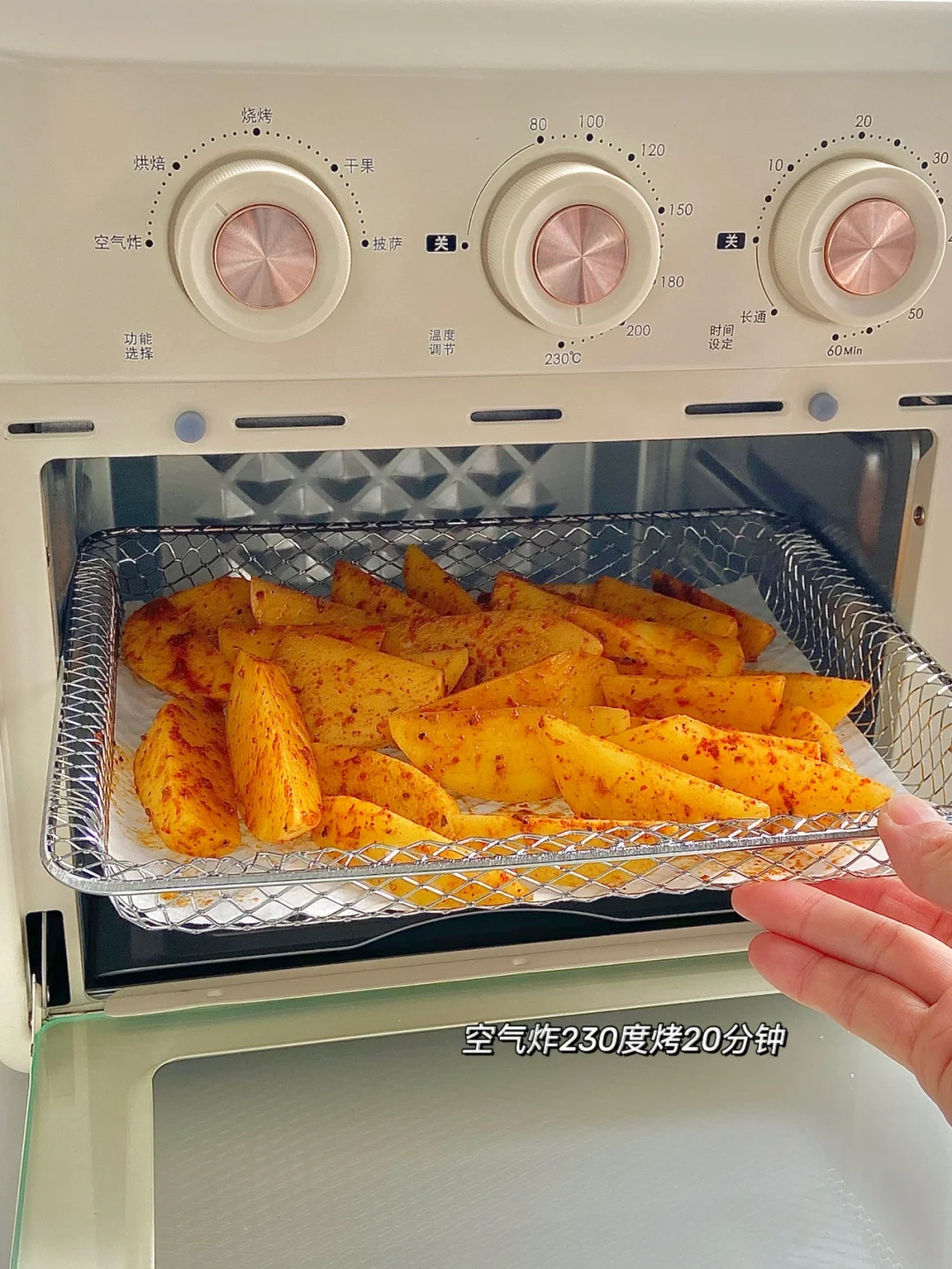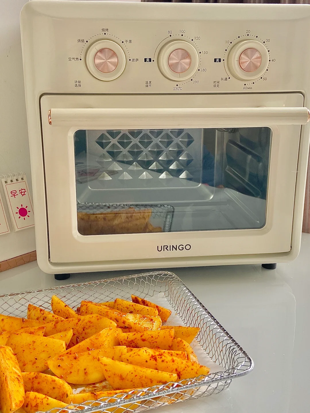 休息日的早餐吃的就要比平时丰盛点,馋了好久的炸薯角赶紧安排上。油炸的我还是不能接受,热量高太油腻吃完我有负罪感😂。这时候就需要一台空气炸烤箱来满足我。最近真的被各种空气炸锅美食所吸引,趁着双十一活动果断给自己添了一个空气炸烤箱,颜色也是我很喜欢的乳白色,小巧精致15升的容量也够一家人的需求。空气炸锅和电烤箱结合体,一台机器多种用途,节省了成本和空间,操作也是简单明了,我必须强烈推荐给你们!