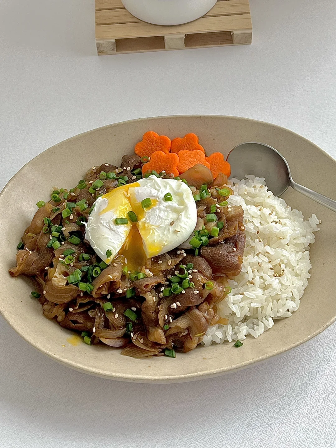 鲜嫩多汁的肥牛加上流心的水波蛋,真的巨好吃😋